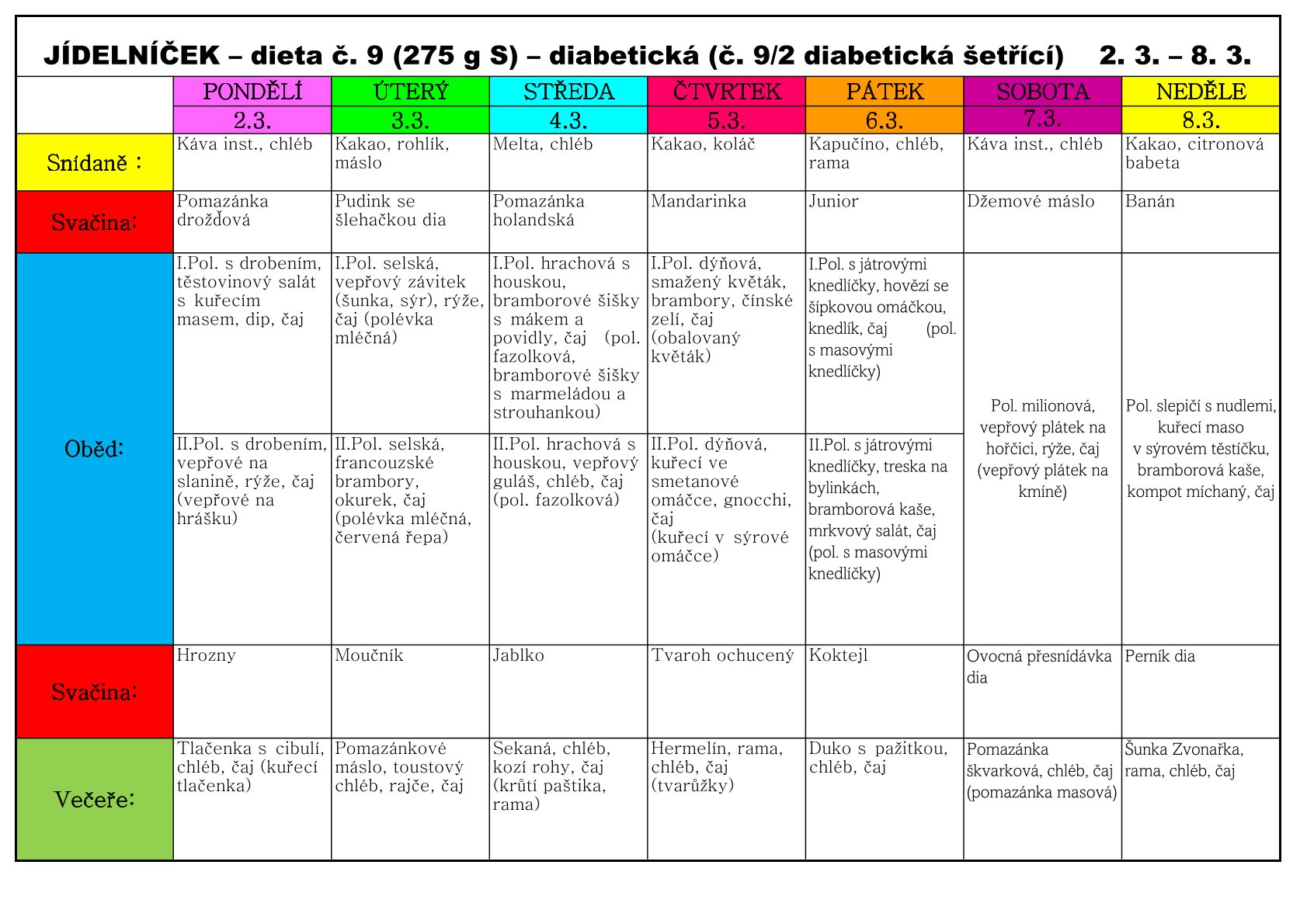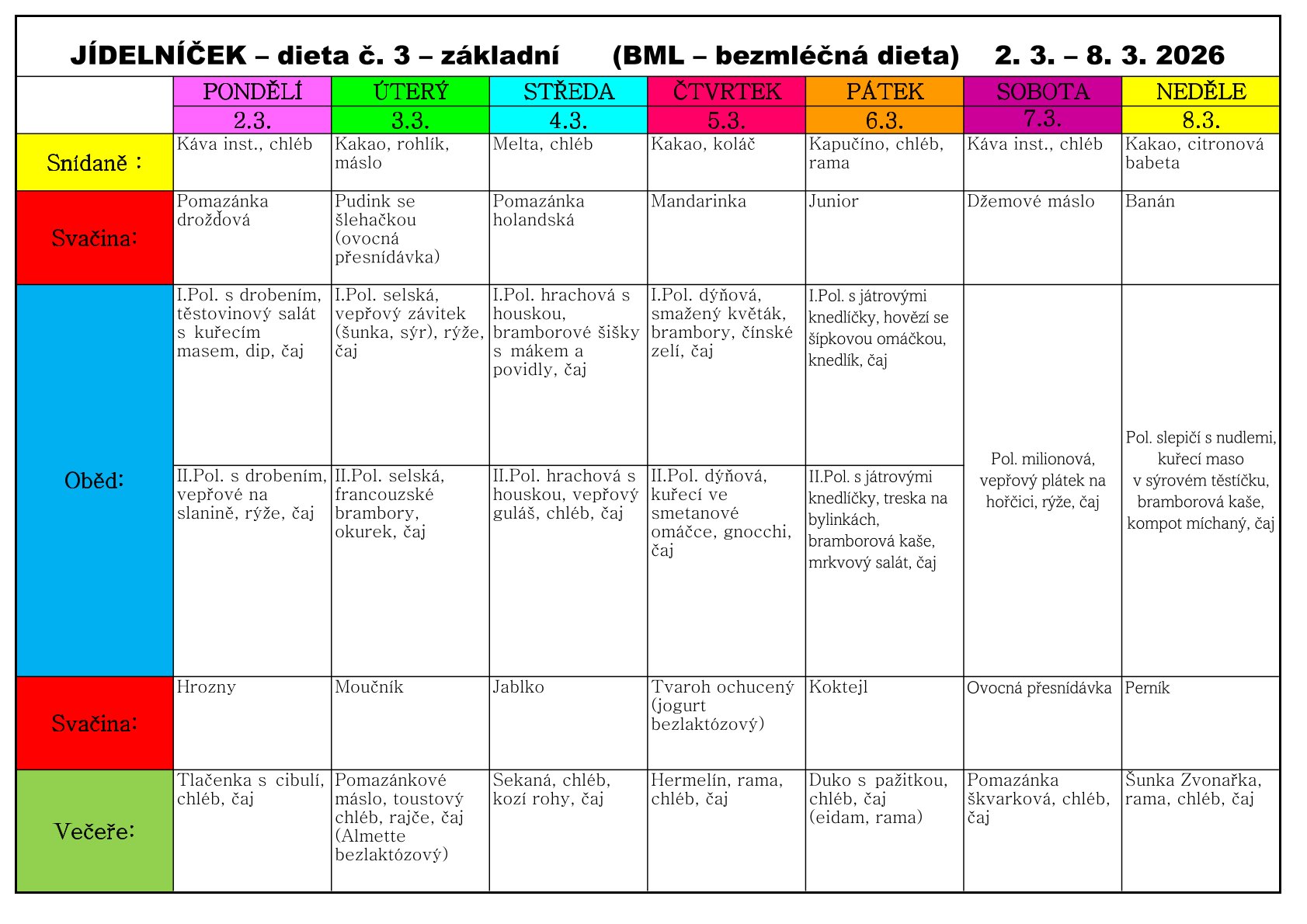 Jídelní lístek od 2.3. - 8.3.2026