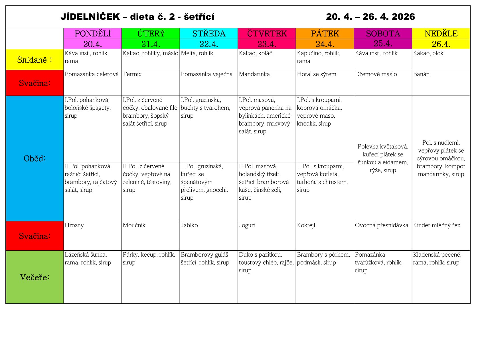 Jídelní lístek od 20.4. - 26.4.2026