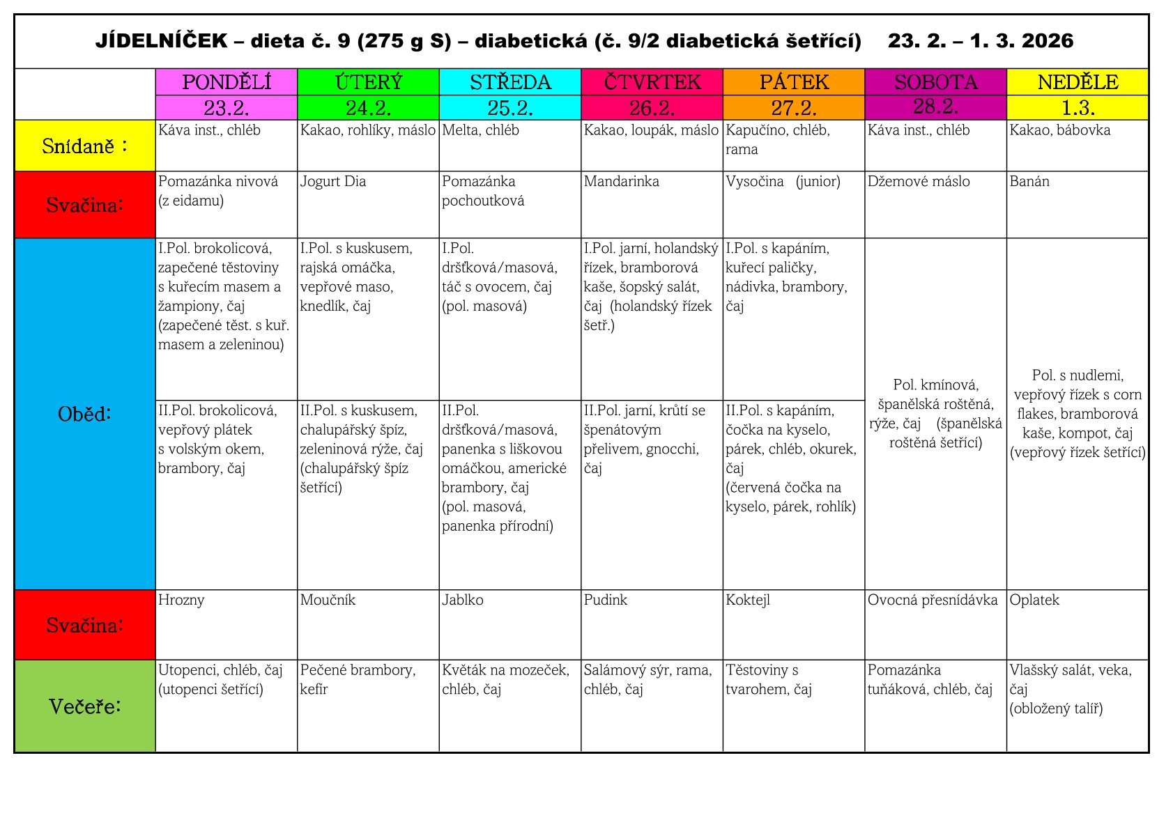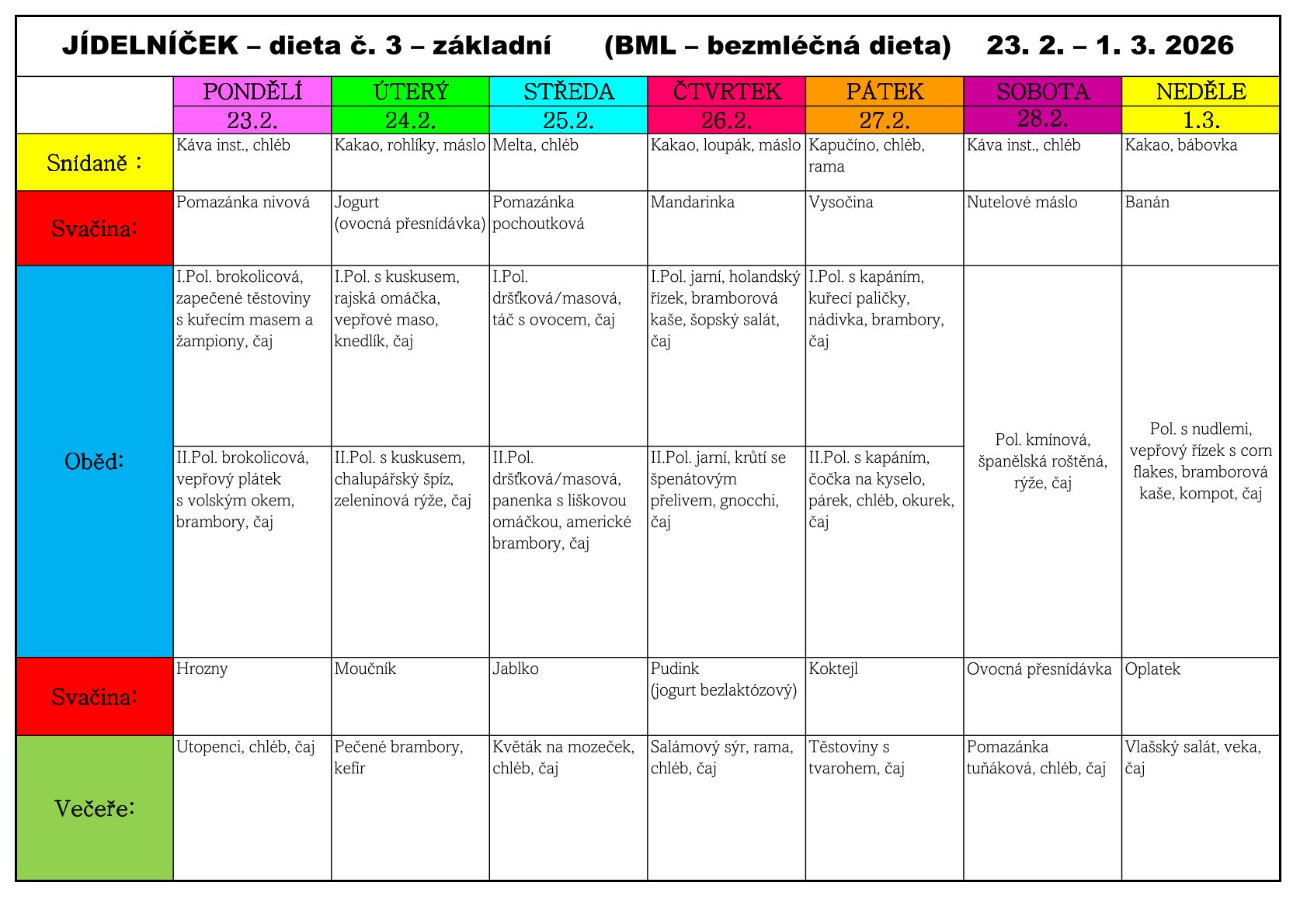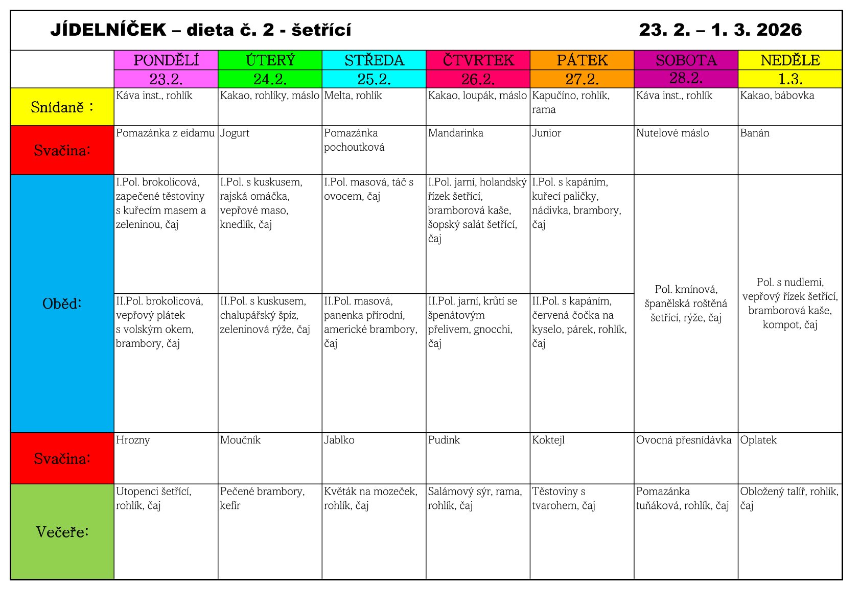 Jídelní lístek od 22.2.2026 - 1.3.2026