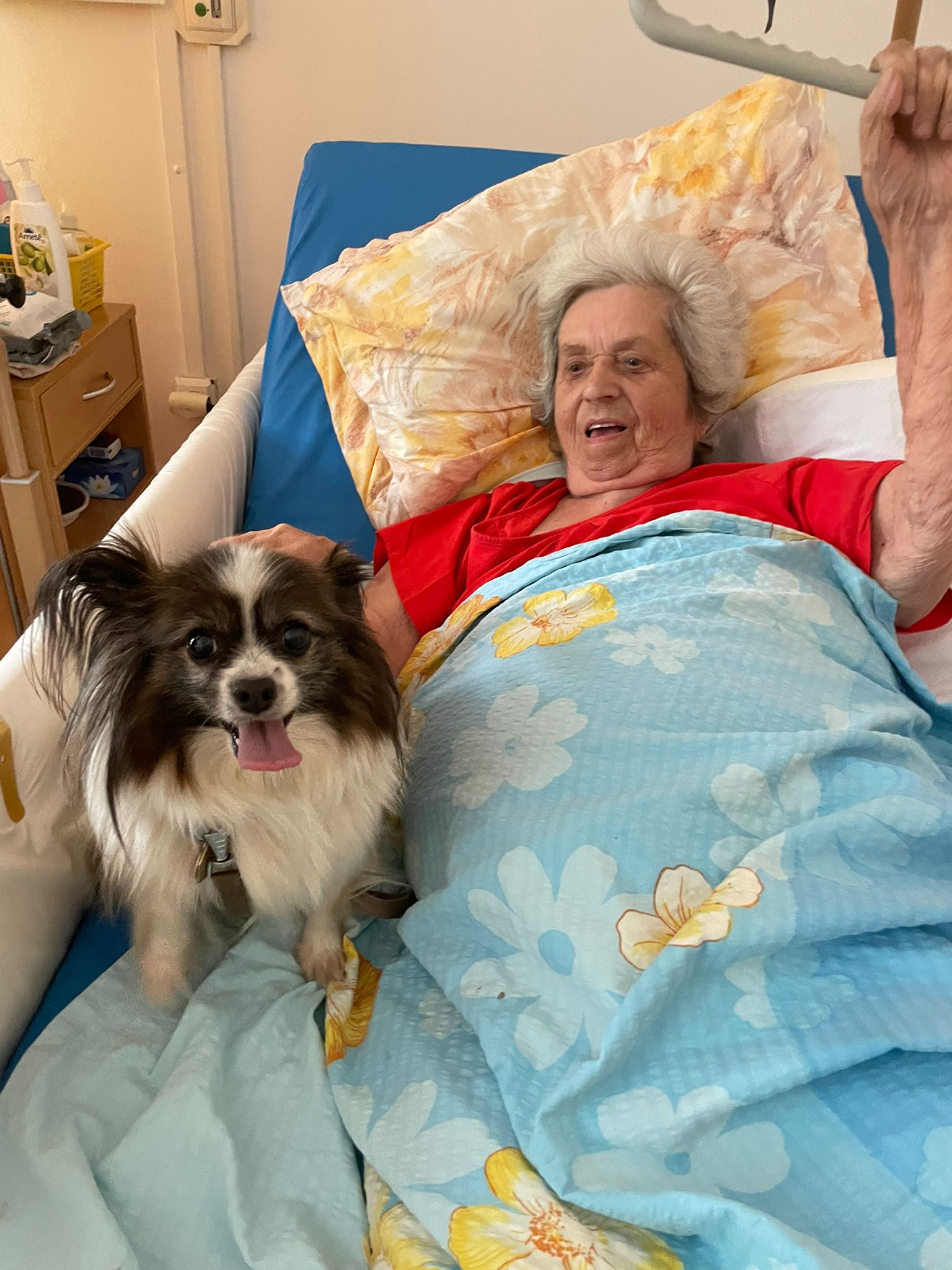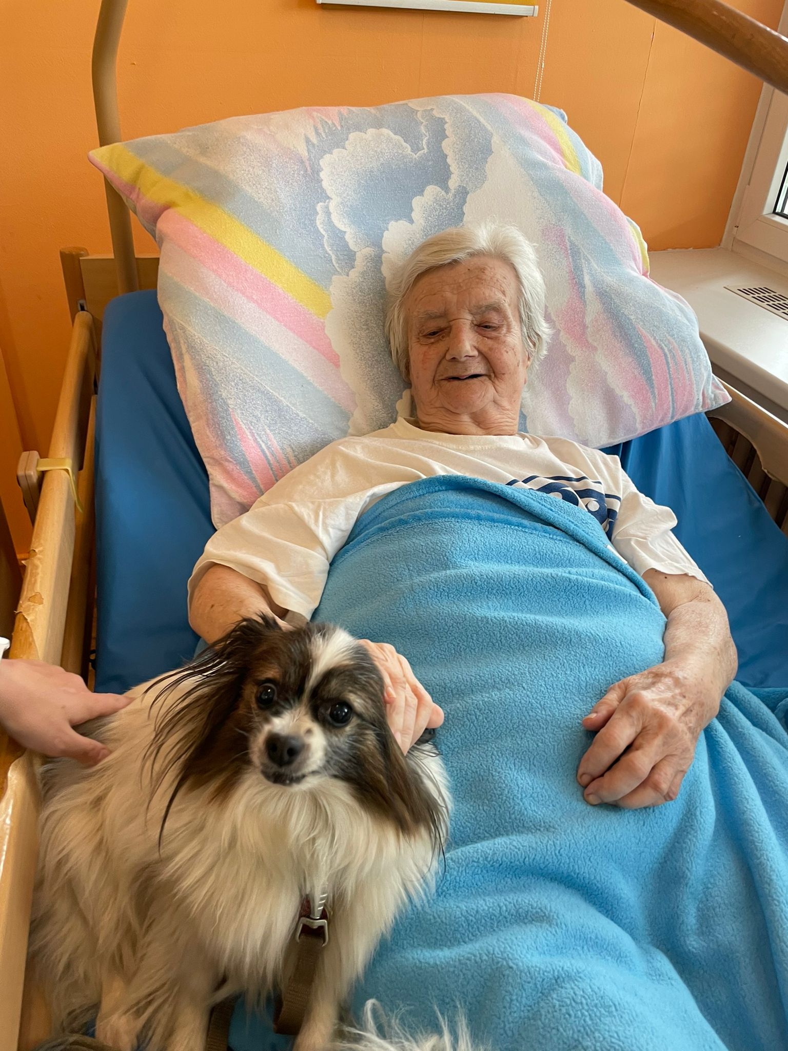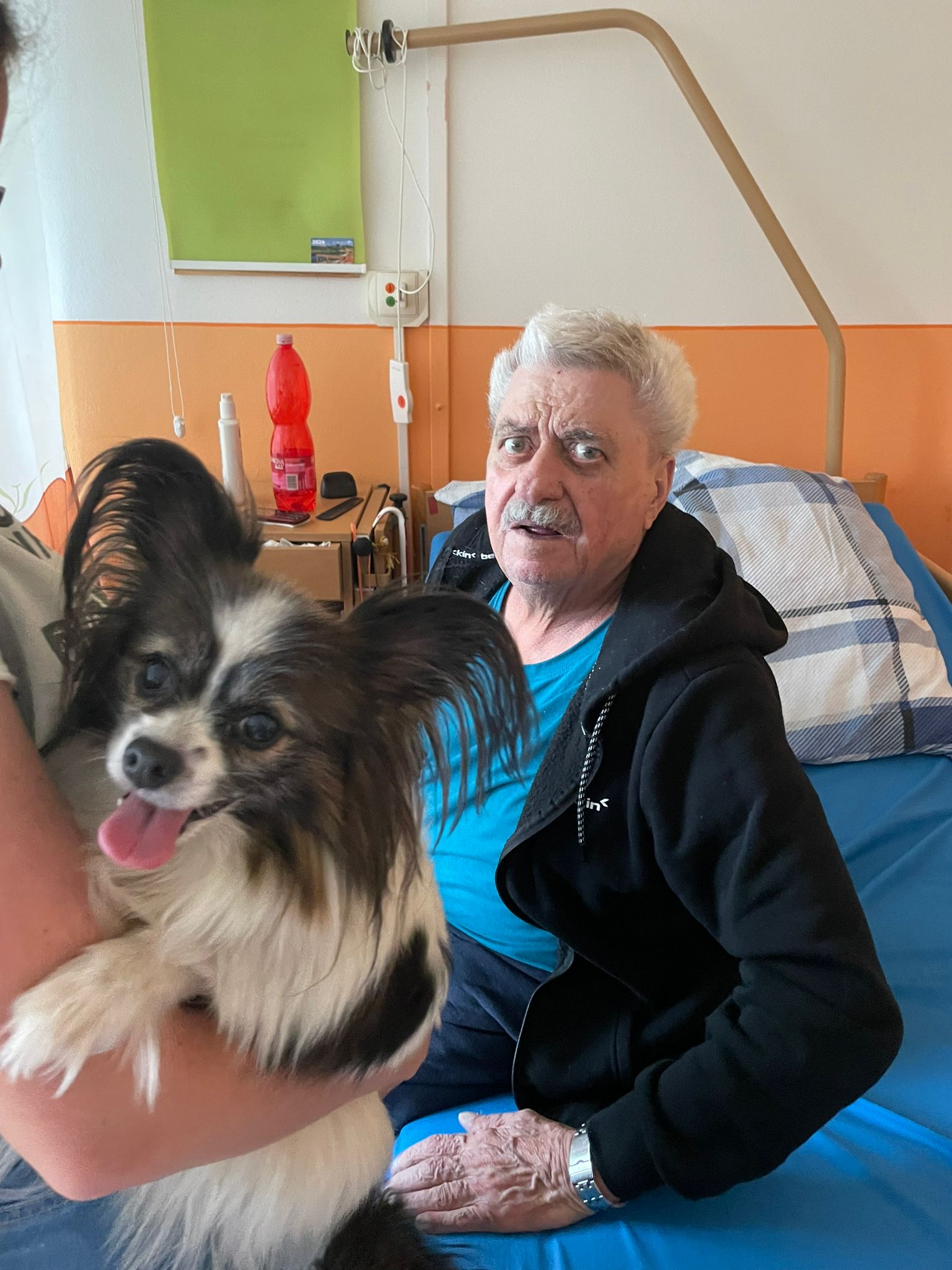 Canisterapie do lůžka - fenky Koky a Zoe potěšily svojí přítomností klienty z 1. oddělení.