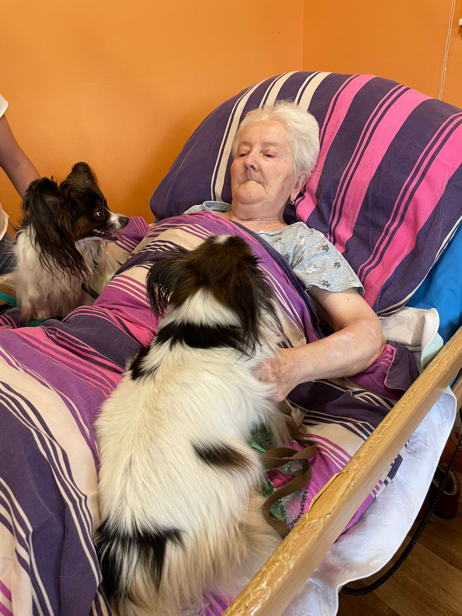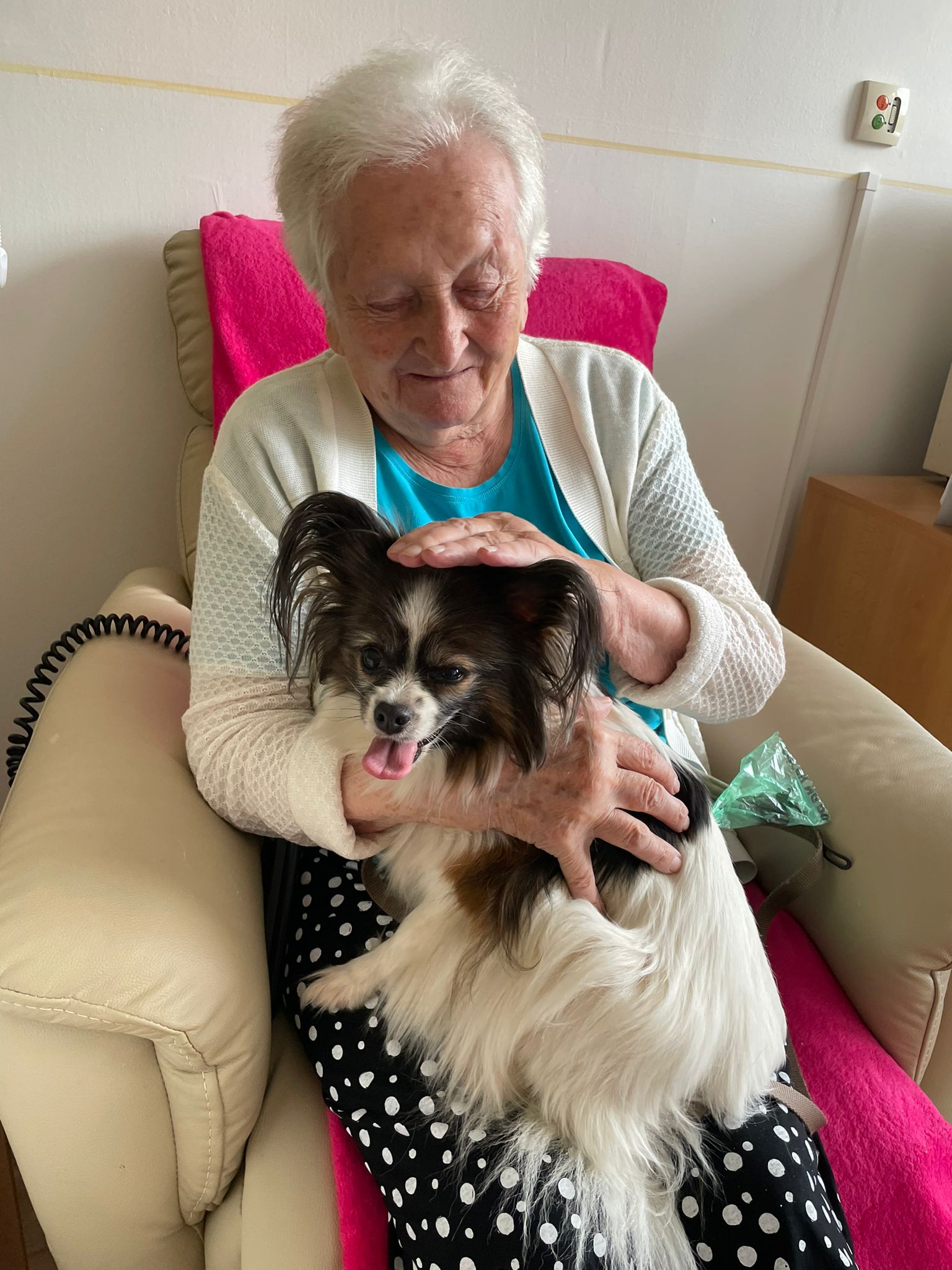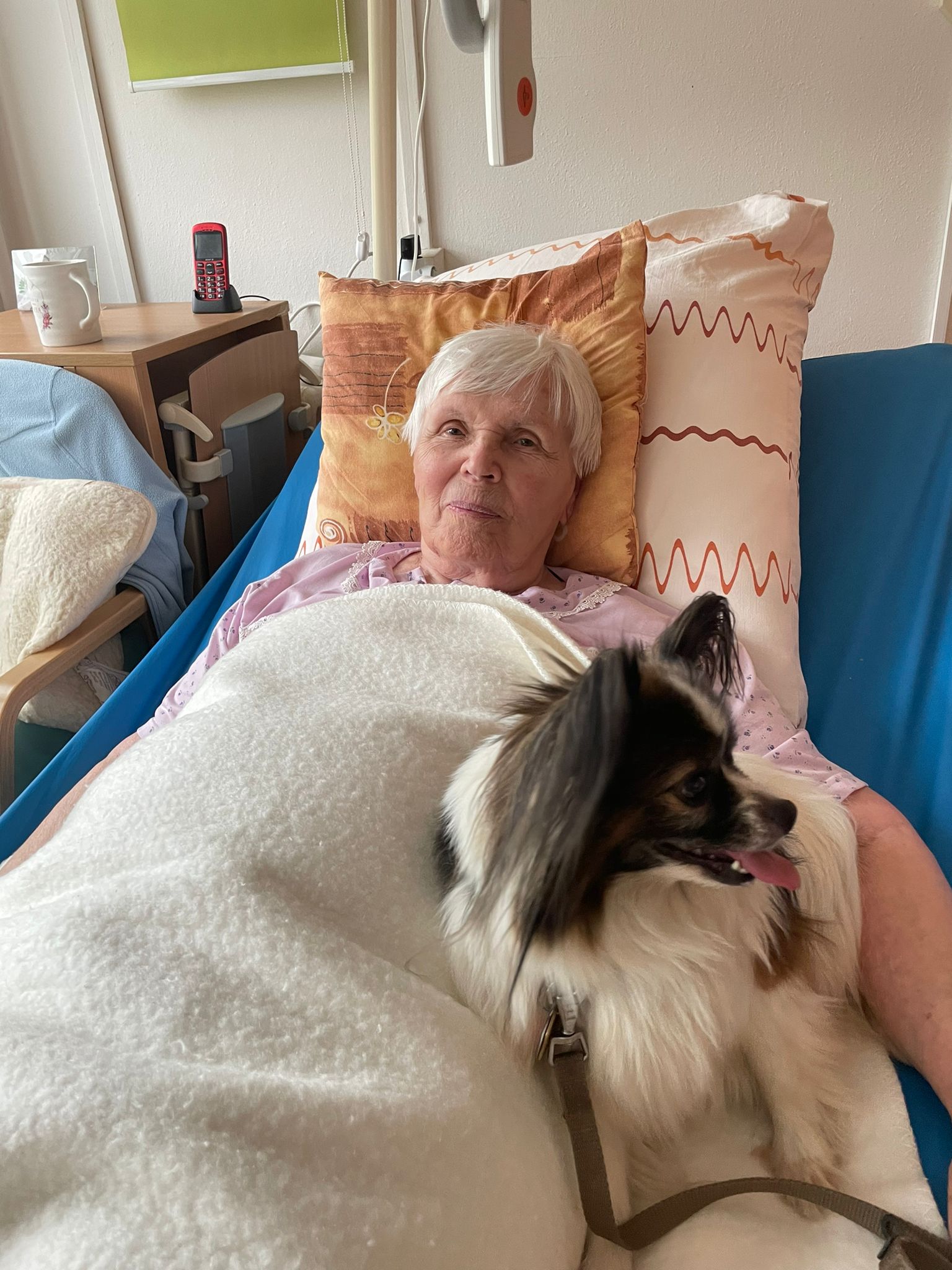 Canisterapie do lůžka - fenky Koky a Zoe potěšily svojí přítomností klienty z 1. oddělení.
