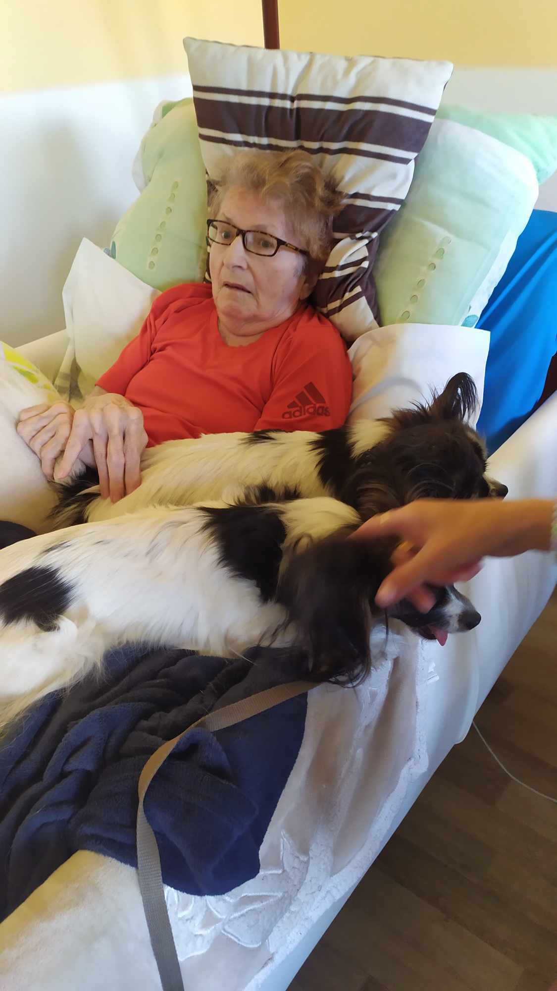 Klienty na pokojích opět navštívili psí kamarádky Koky a Zoe, tentokrát na 2. oddělení. Jejich návštěva všem vykouzlila úsměv na tváři.