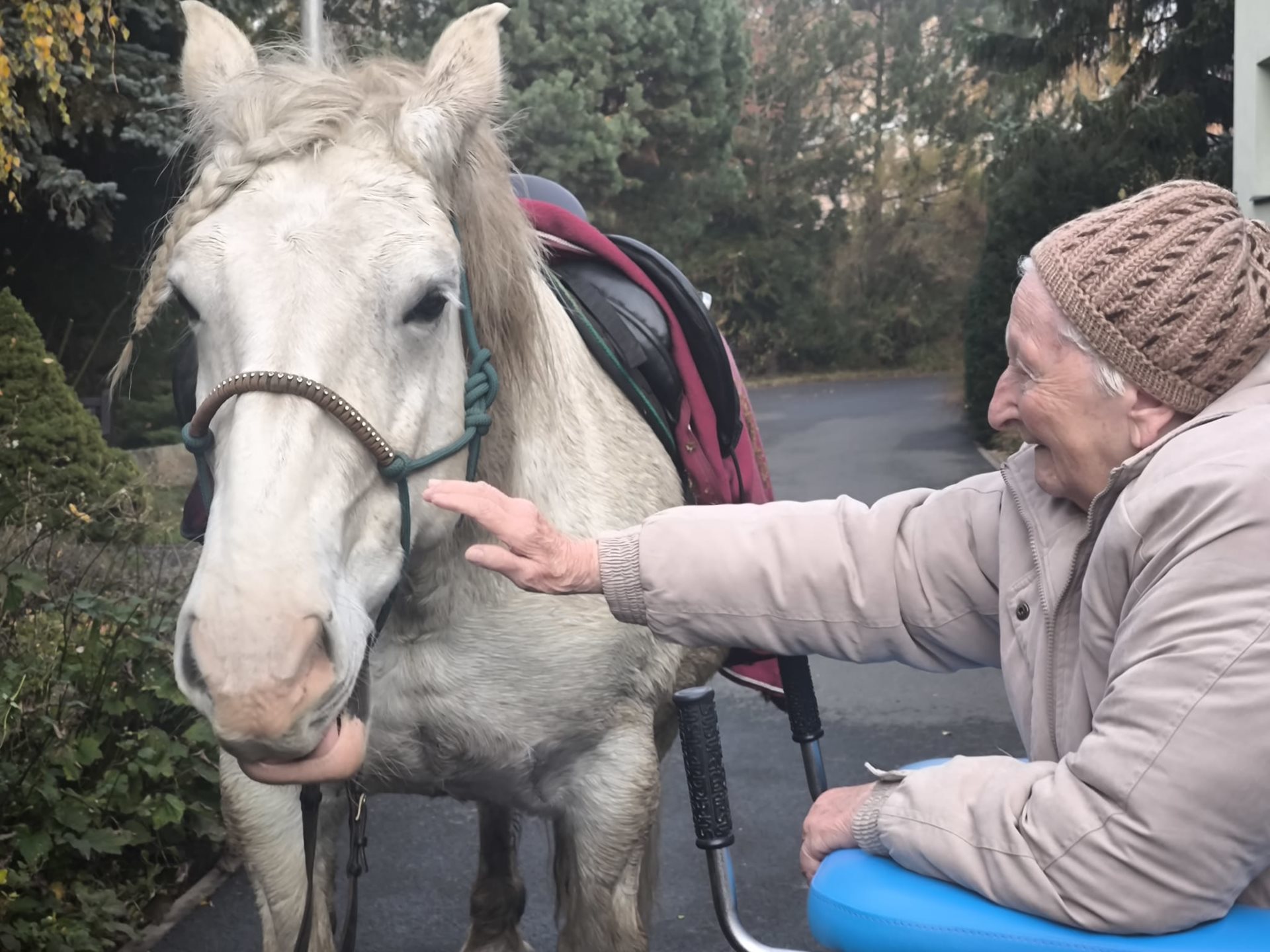 Dnes jsme oslavili tradiční příchod svatého Martina na bílém koni. Na návštěvu k nám dorazil kůň jménem Forest Gamp, který si okamžitě získal srdce všech přítomných. Klienti měli možnost si ho pohladit, nakrmit mrkví a užít si dopoledne plné úsměvů a dobré nálady.