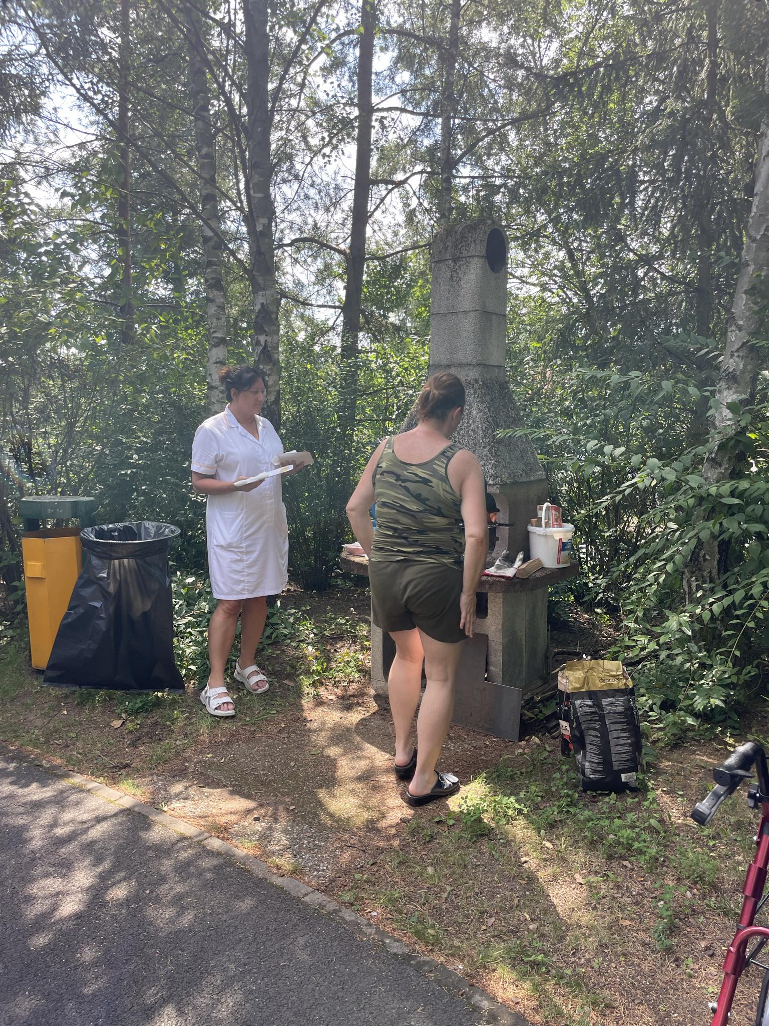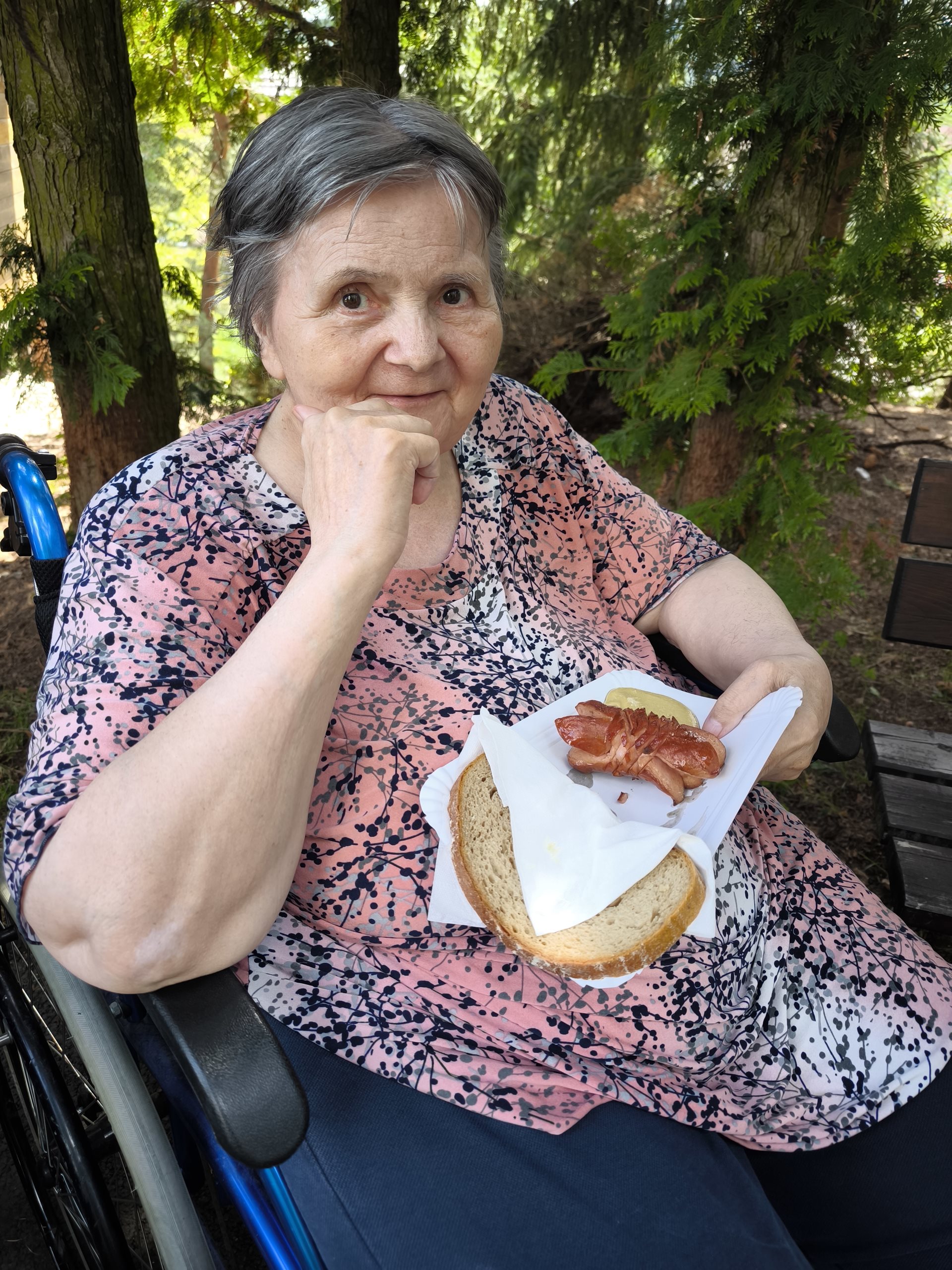 Dnes jsme si za hezkého počasí ugrilovali špekáčky a zazpívali si za doprovodu reprodukované hudby.