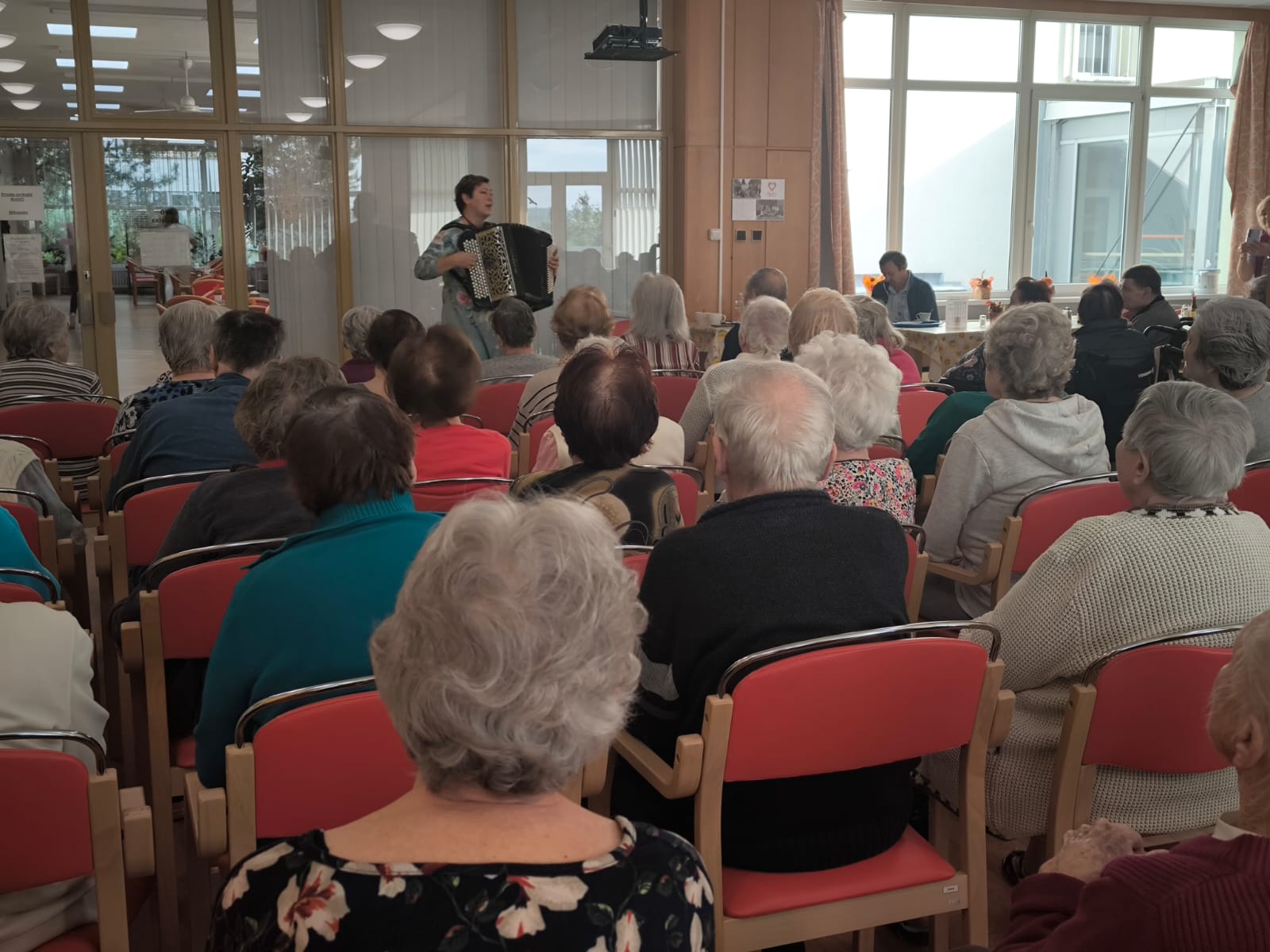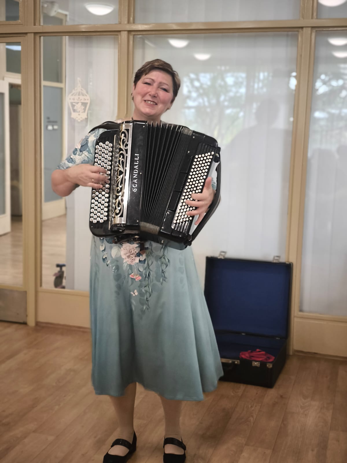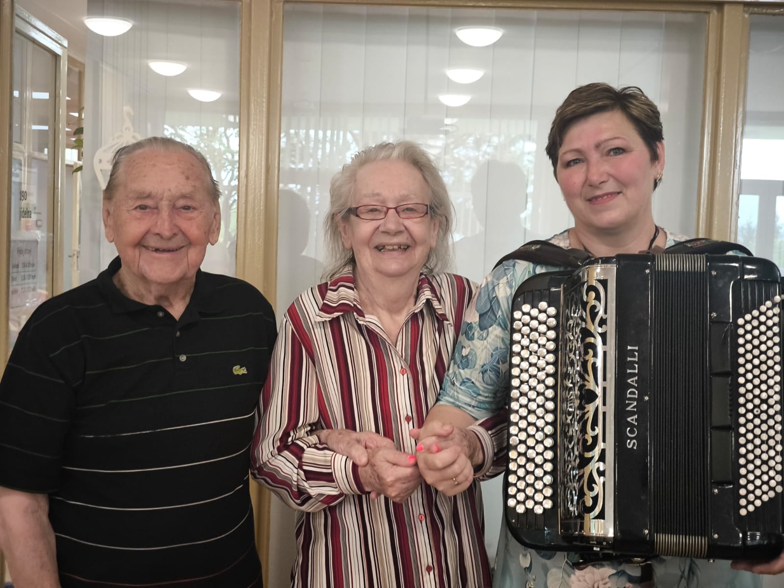 Dnes k nám zavítala paní Zavadilová se svou harmonikou 🎶. Klienti si s chutí zazpívali české písničky, někteří se pustili i do tance, celé dopoledne se neslo ve znamení radosti a dobré nálady.