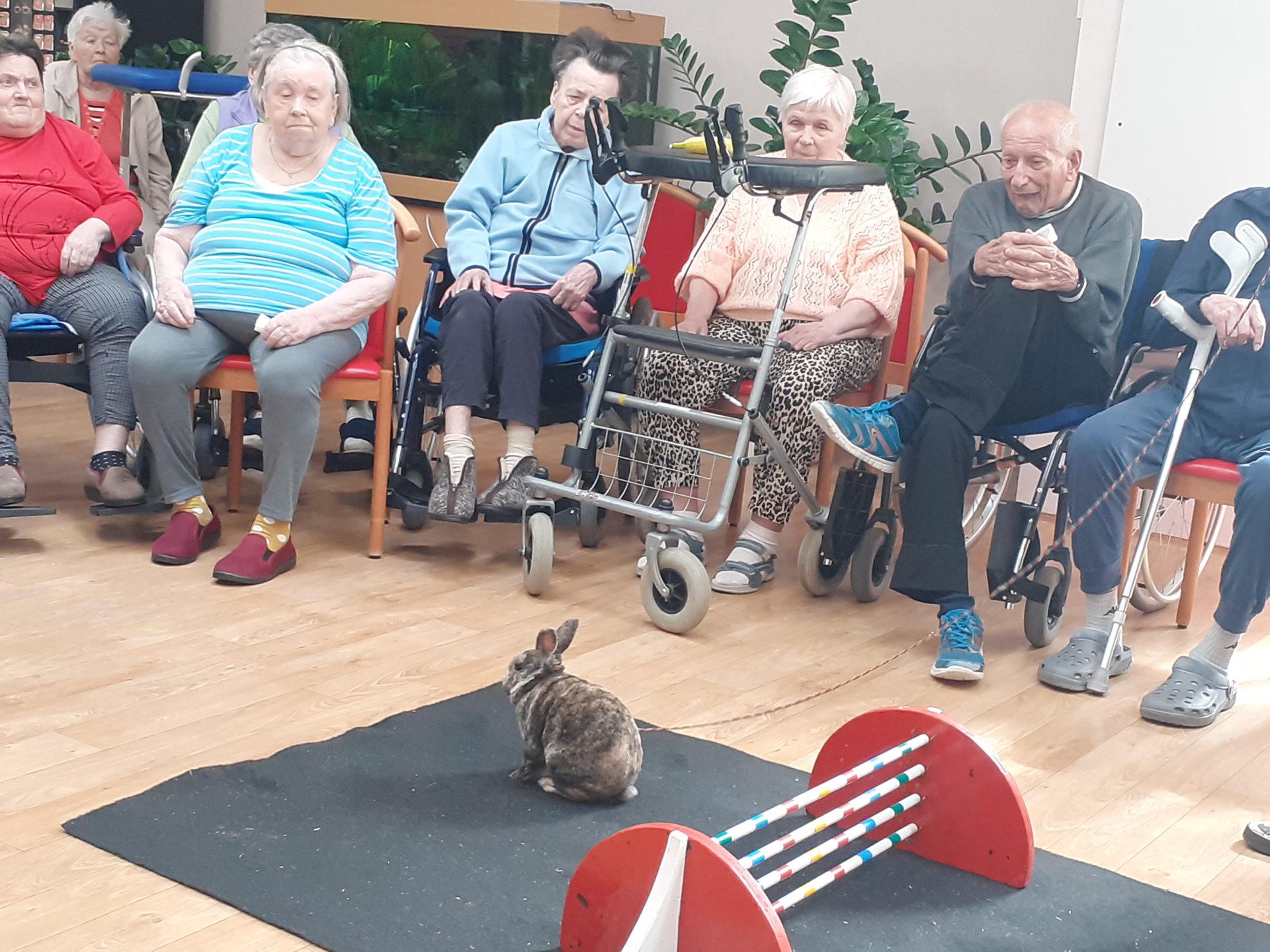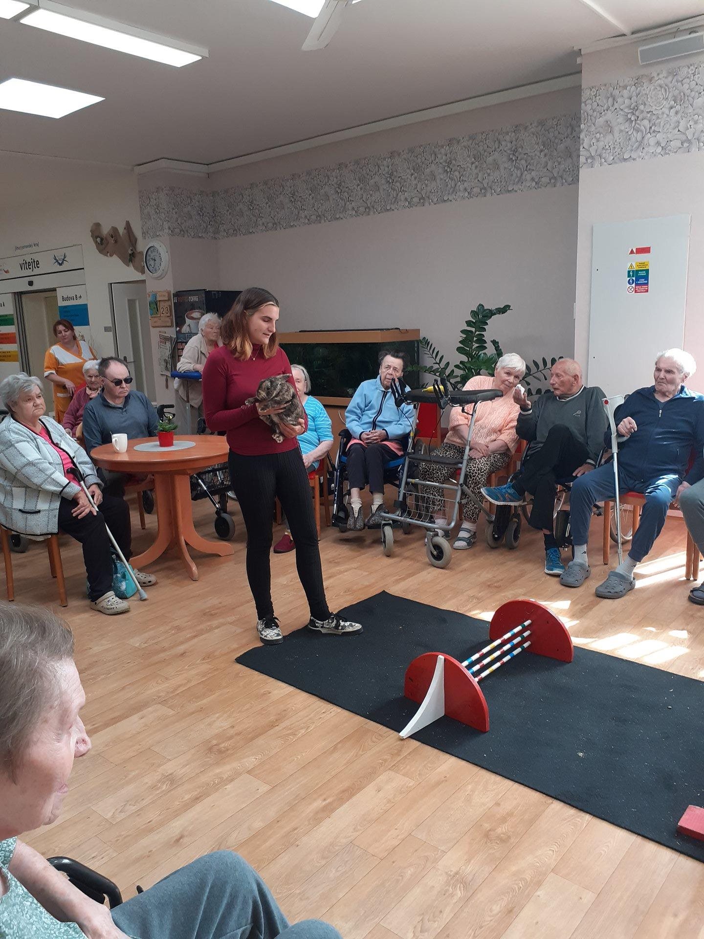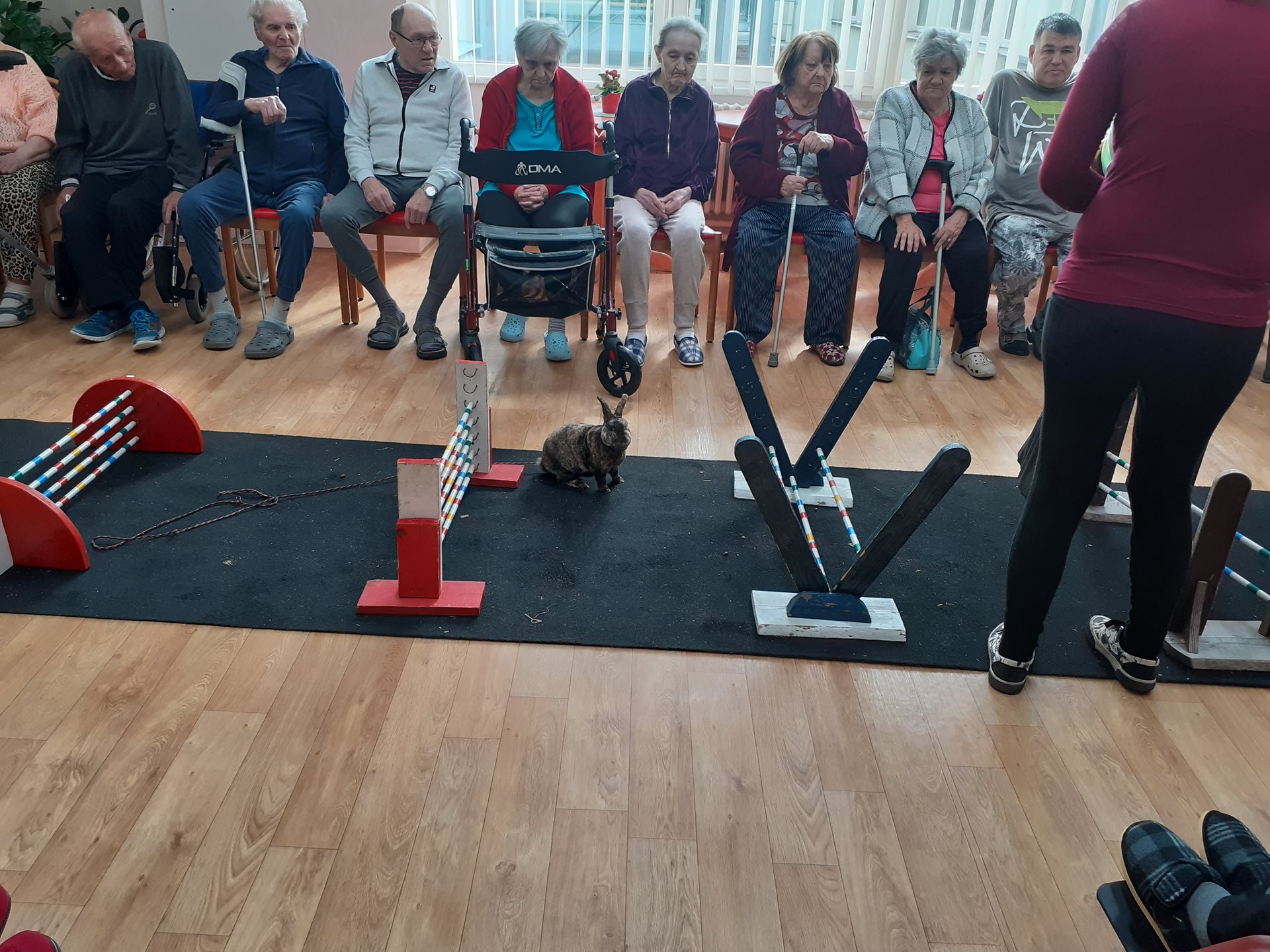 Dnes nás navštívili králíčci. Předvedli nám "králičí hop", což je skákání přes překážky na vytyčené trati. Poté si každý mohl králíčka prohlédnout a pohladit.
