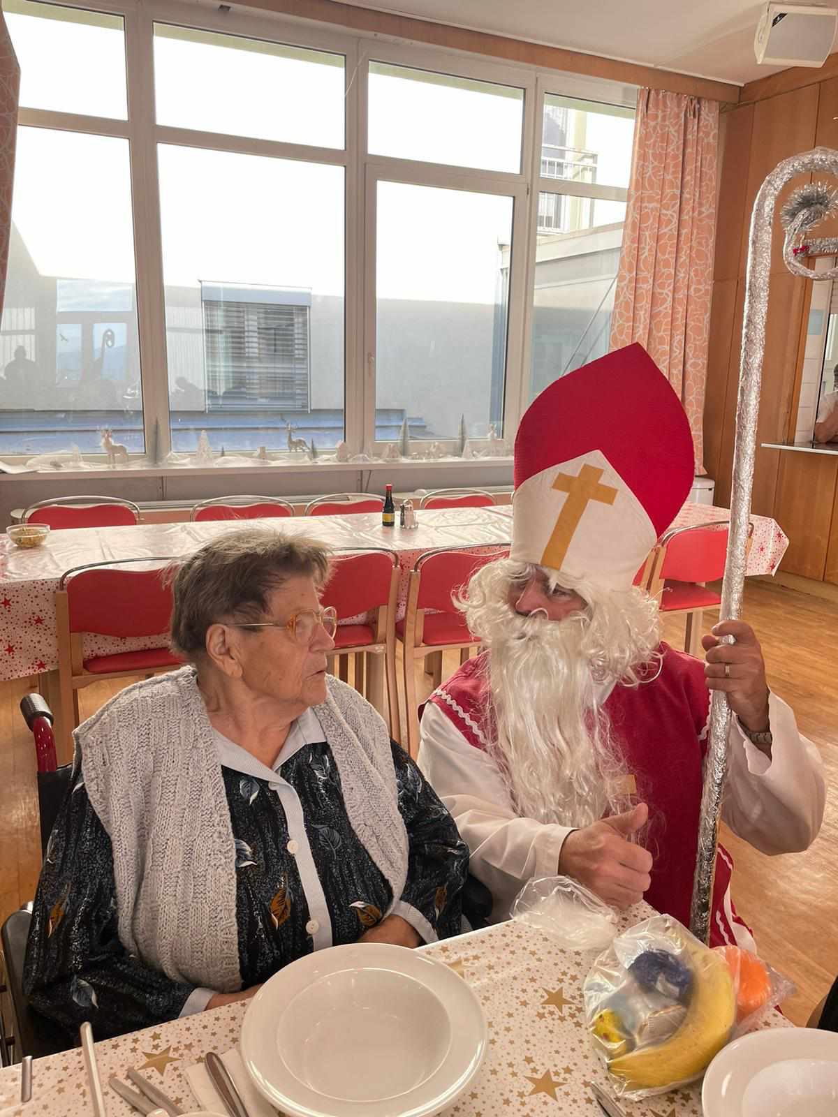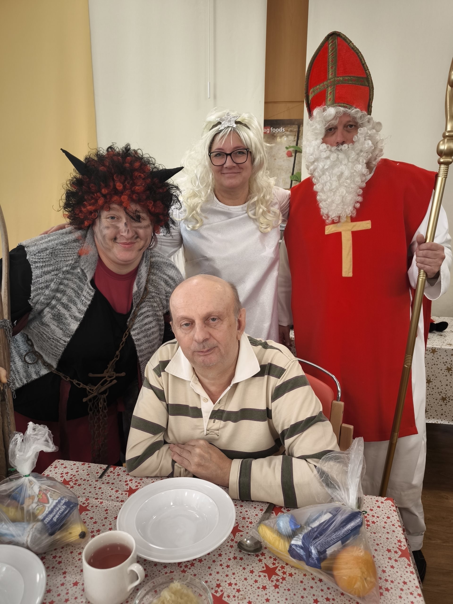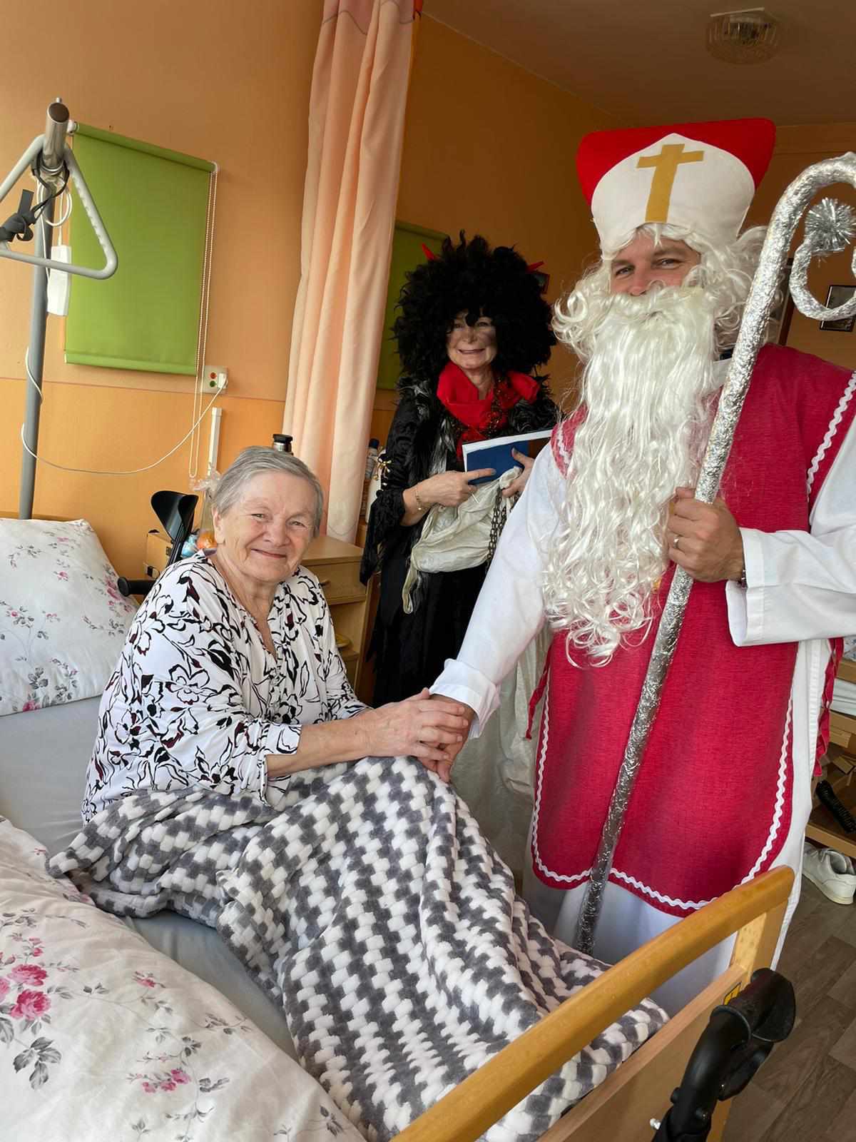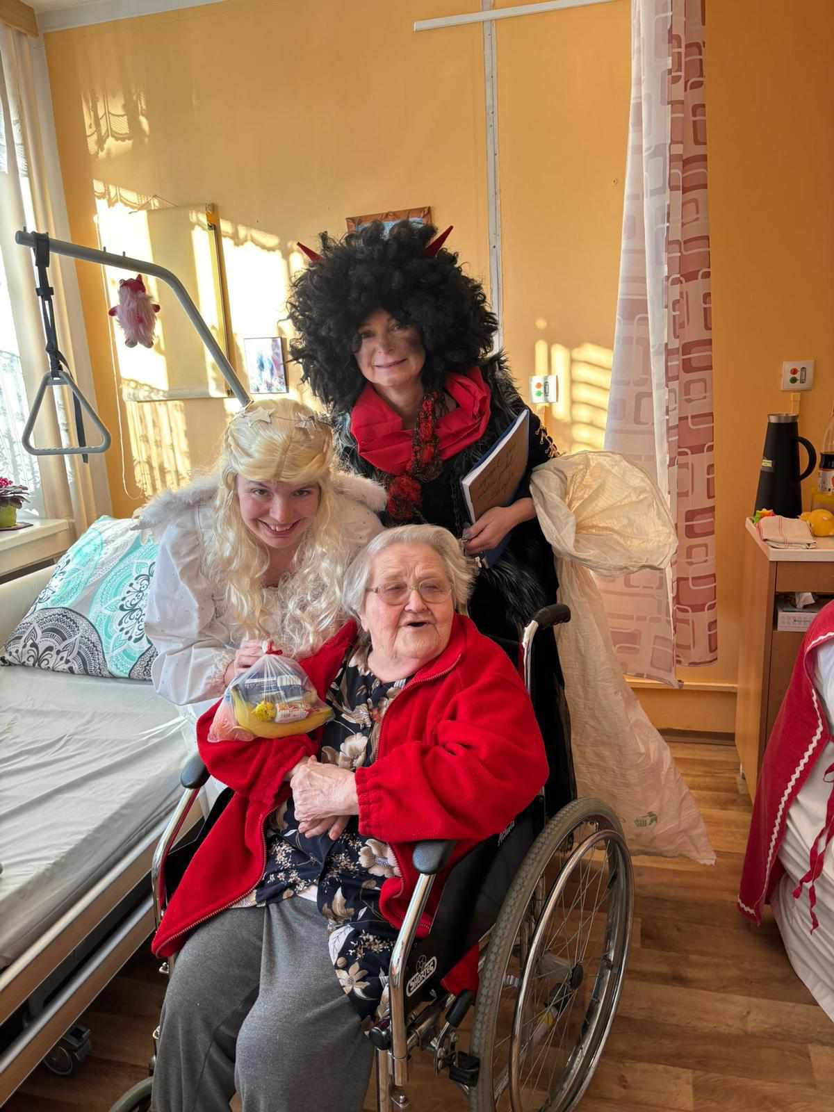 Nezapomnělo se ani na klienty, kteří zůstali na pokojích – Mikulášova družina je navštívila, popřála klidné svátky a předala malé pohoštění.