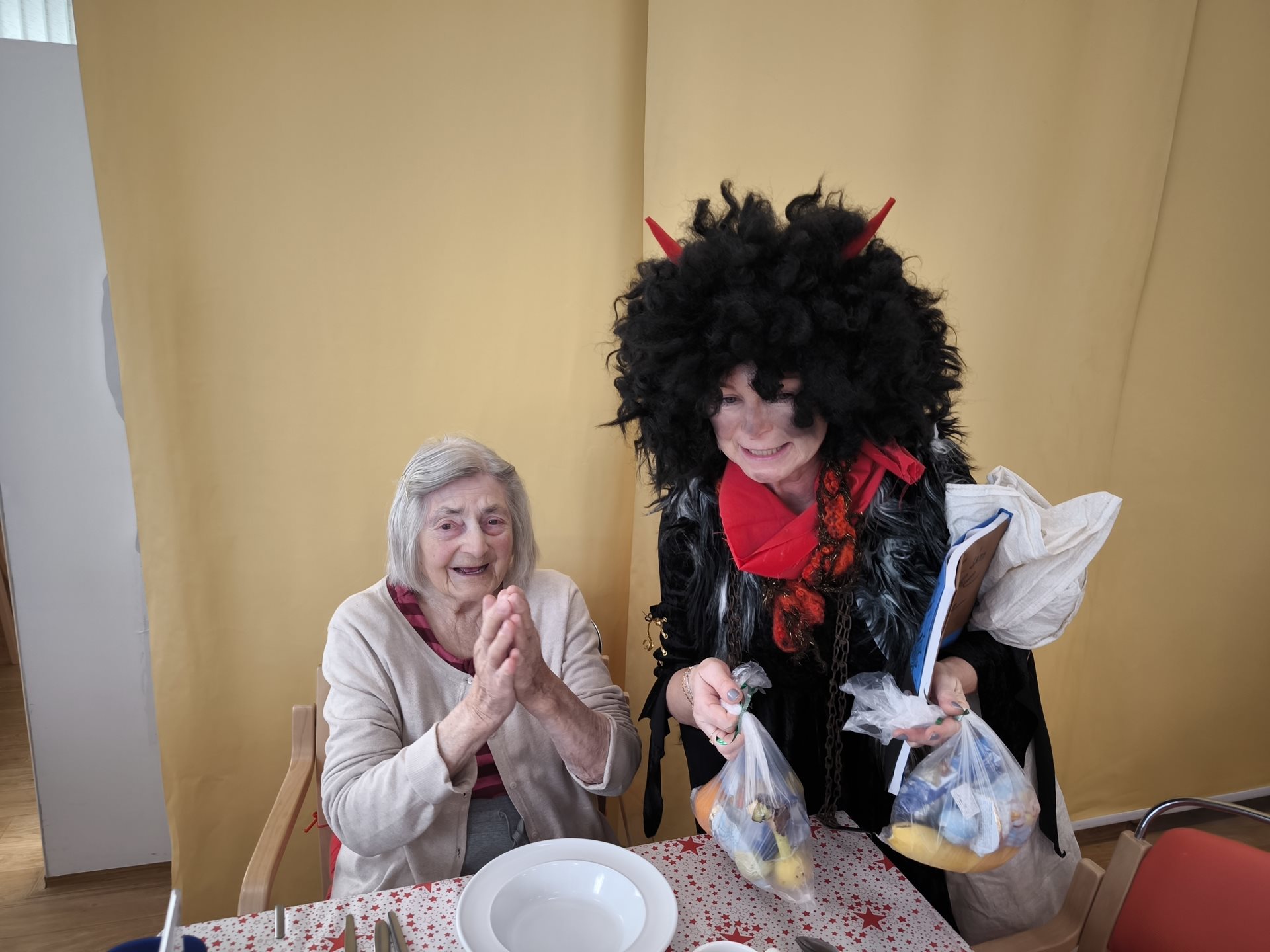 Do našeho domova zavítal Mikuláš s anděly a čerty, aby klientům přinesl trochu sváteční nálady. Ve společenské místnosti rozdal balíčky s ovocem a sladkostmi, přátelsky si s klienty povídal a čerti přidali trochu legrace.