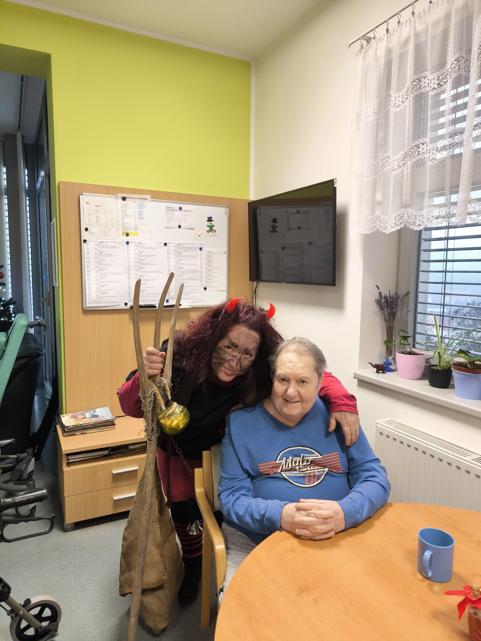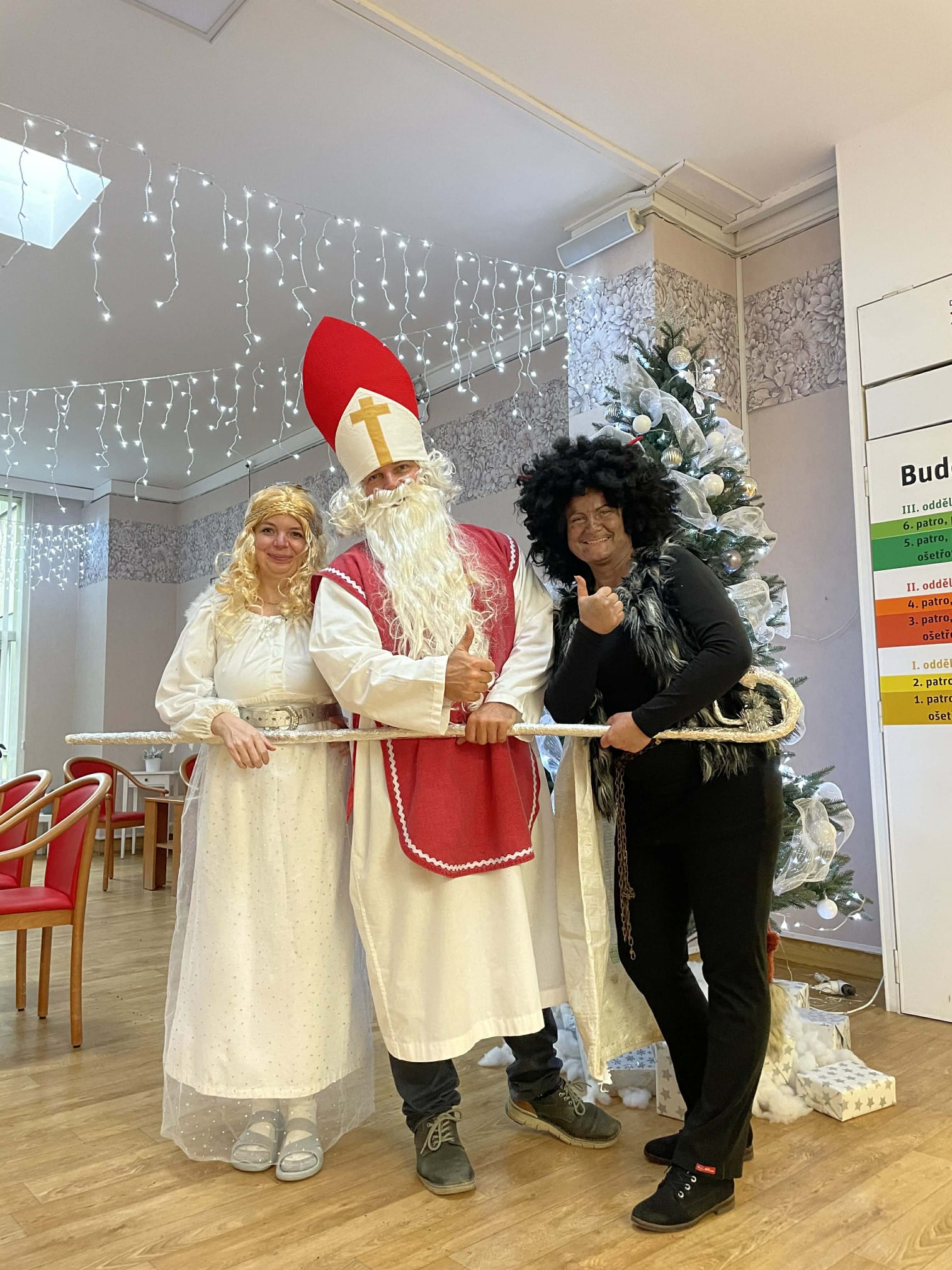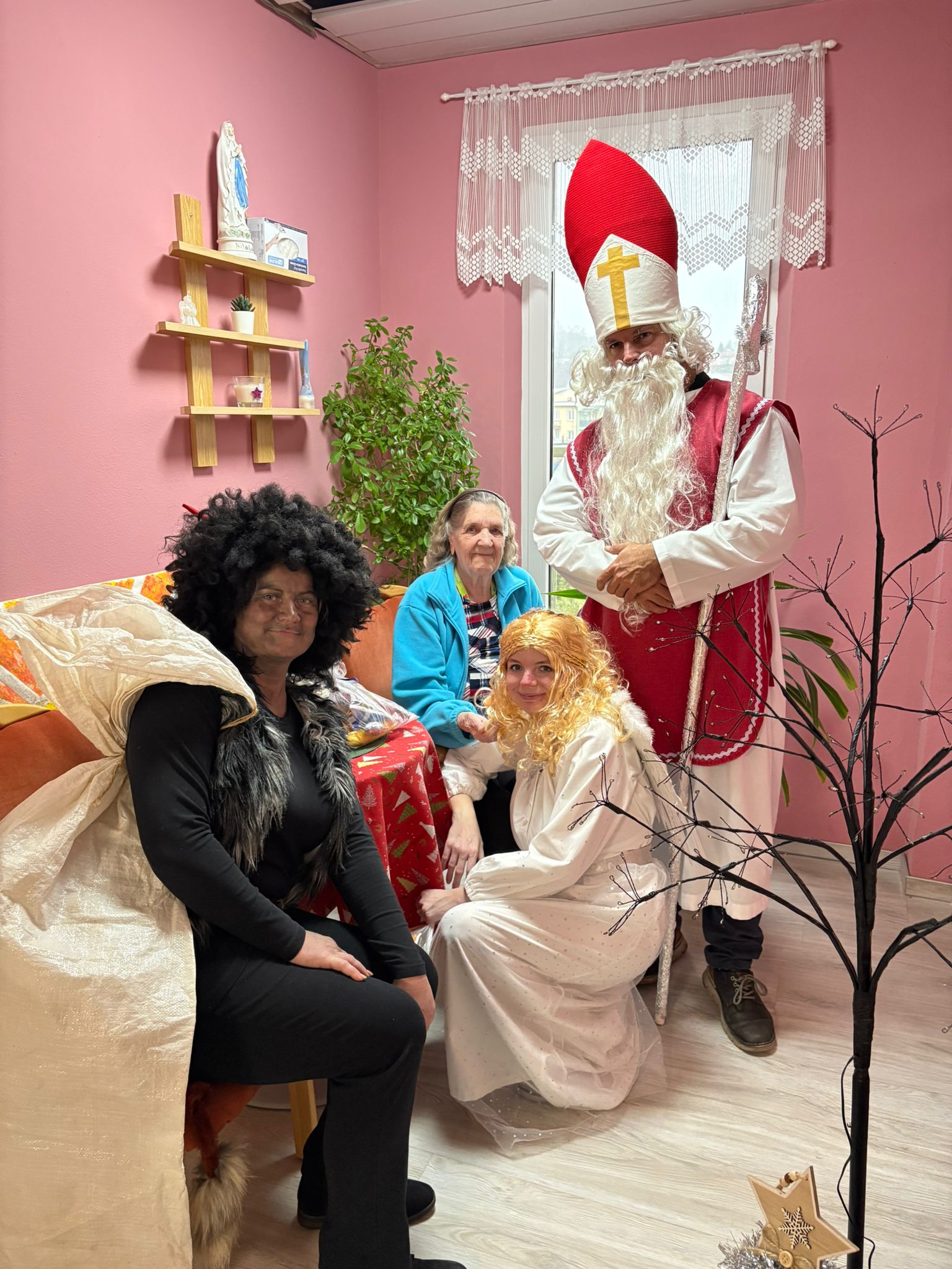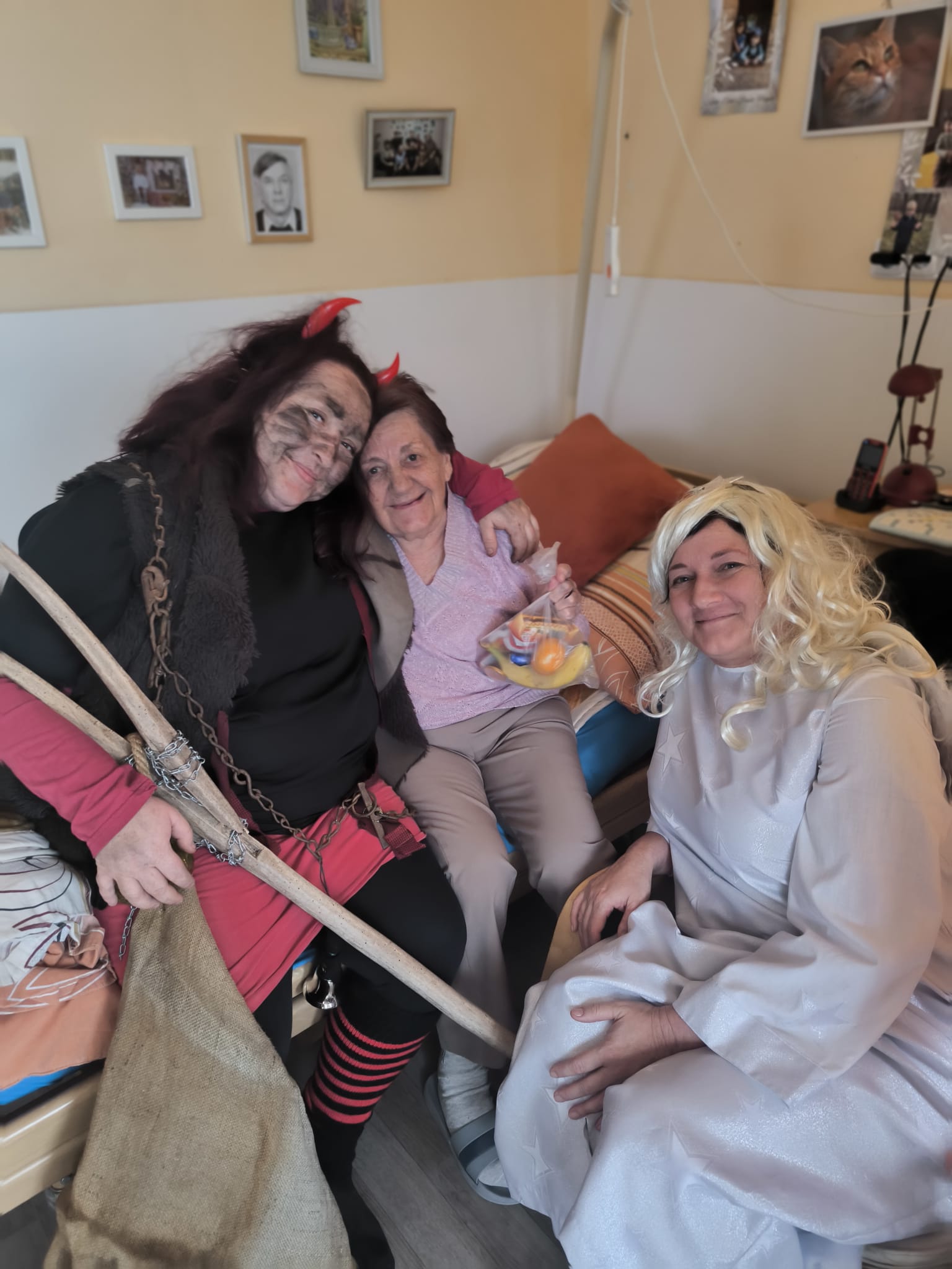 Dnešní den se v našem domově nesl v duchu krásné mikulášské tradice. Dopoledne mezi klienty zavítal Mikuláš, čert a anděl – v podání našich šikovných pracovníků, kteří každoročně přinášejí do domova sváteční atmosféru. Jejich příchod provázela veselá a slavnostní nálada, která rozzářila celý společenský sál.