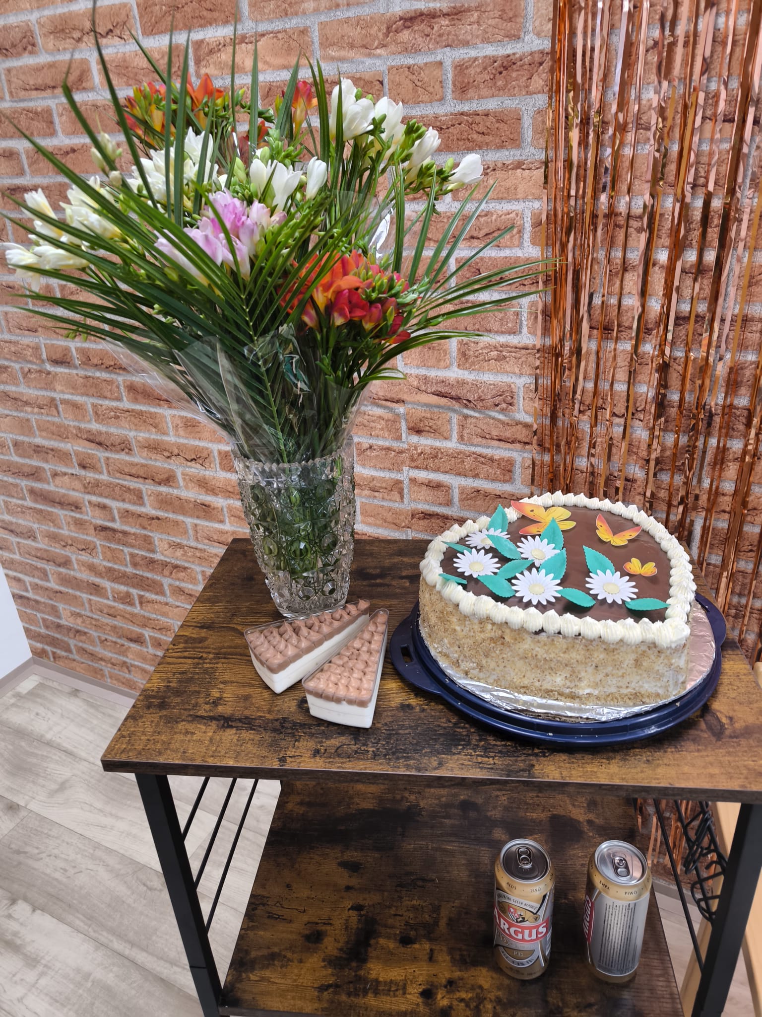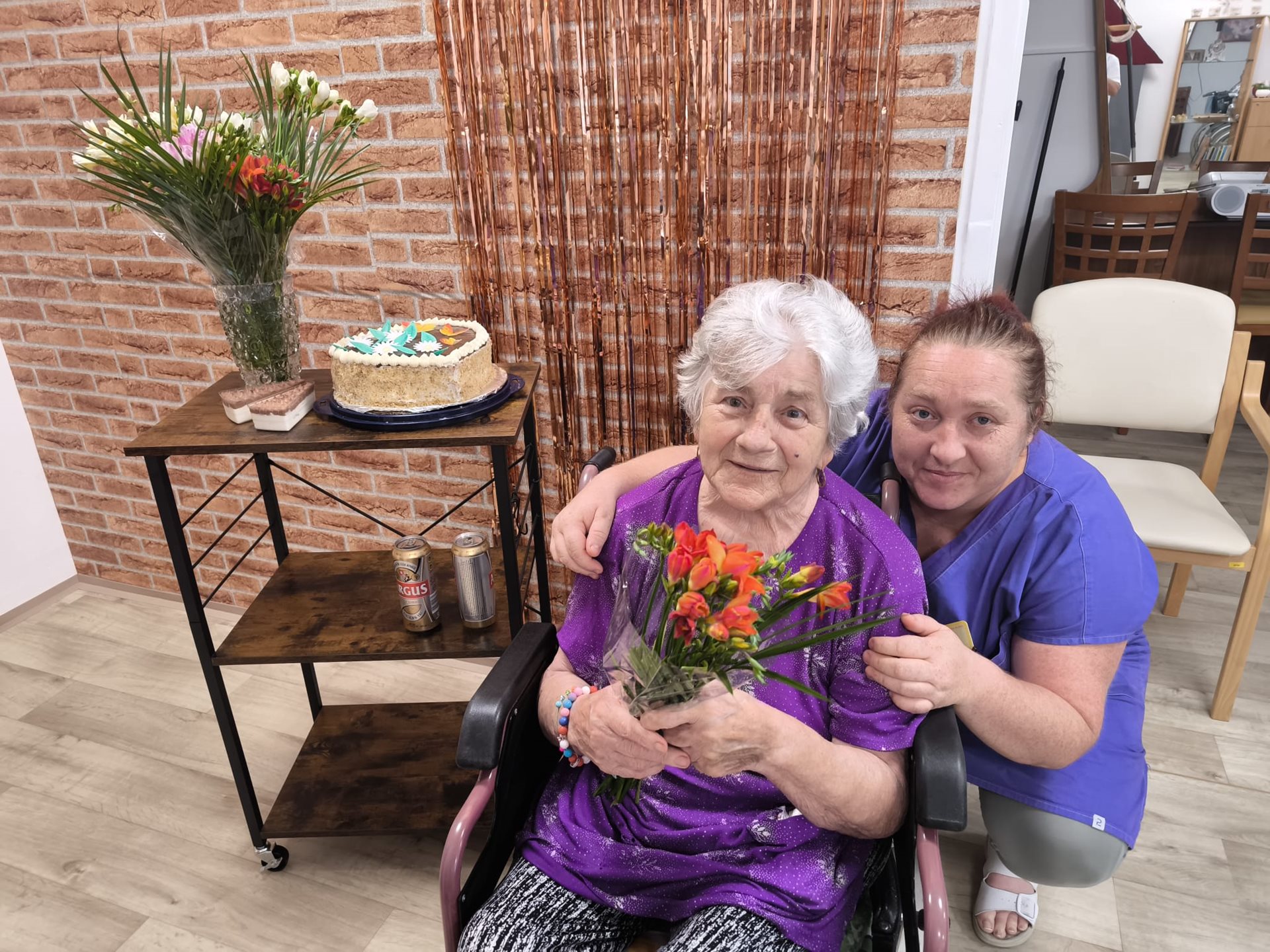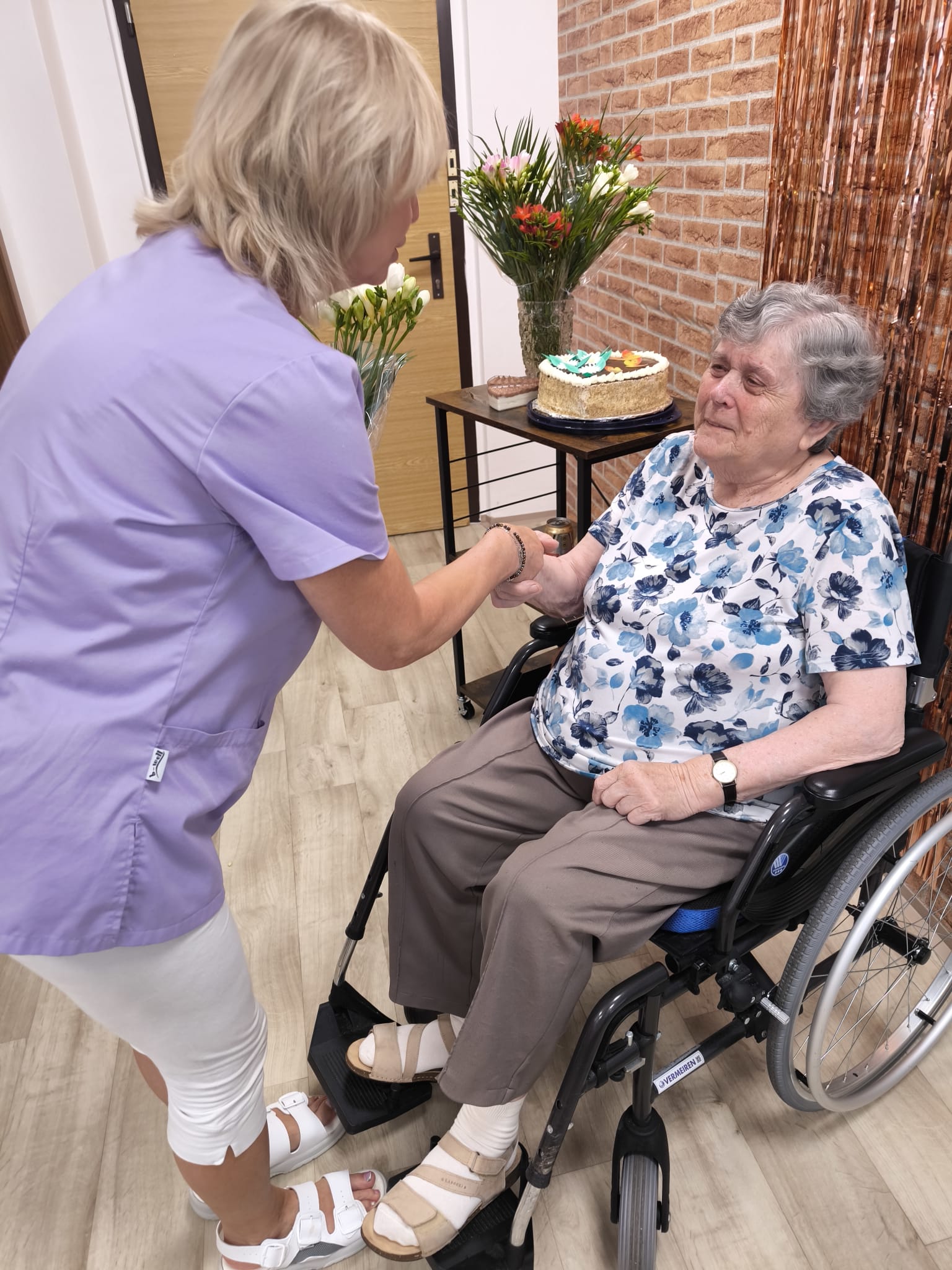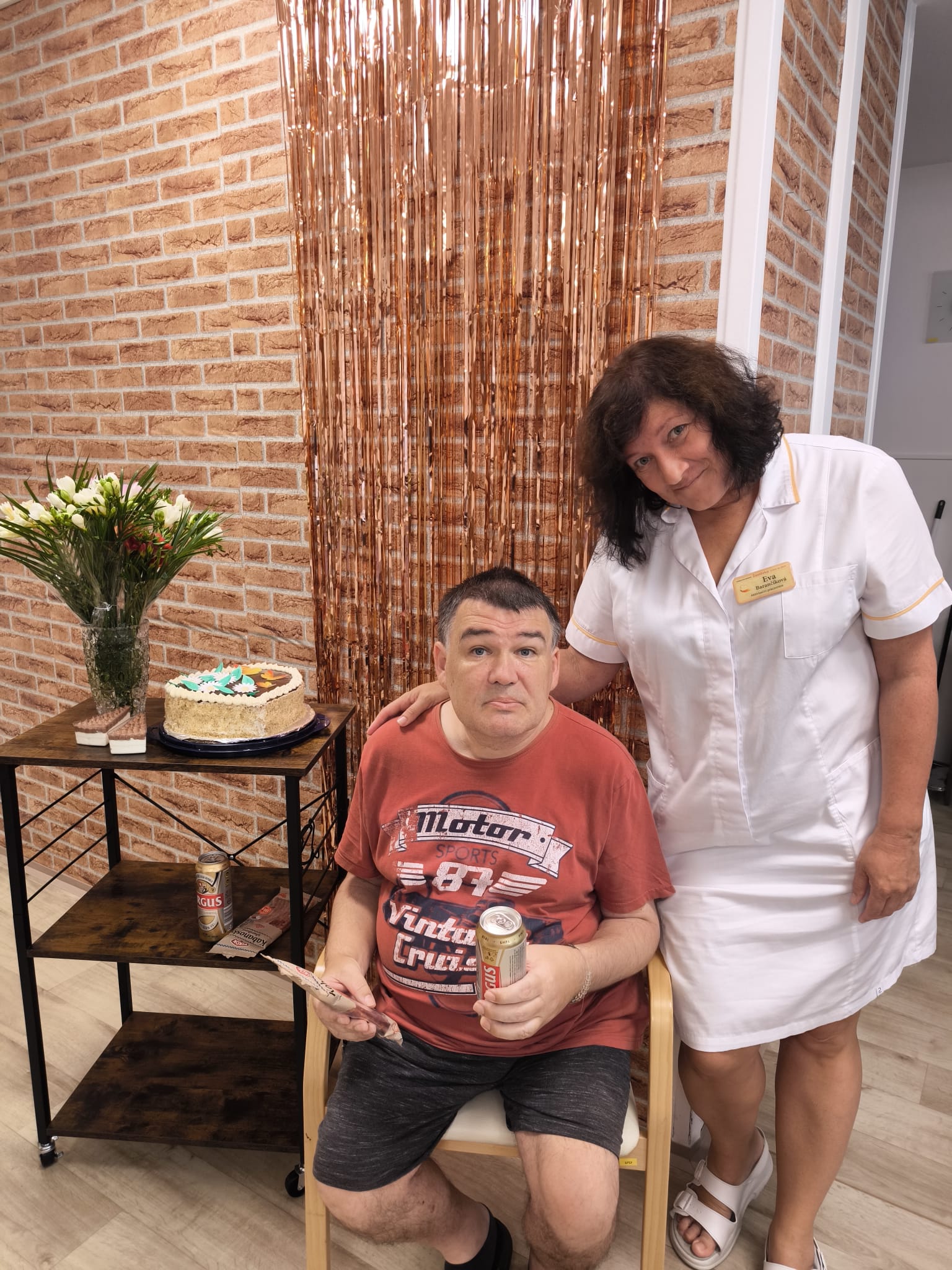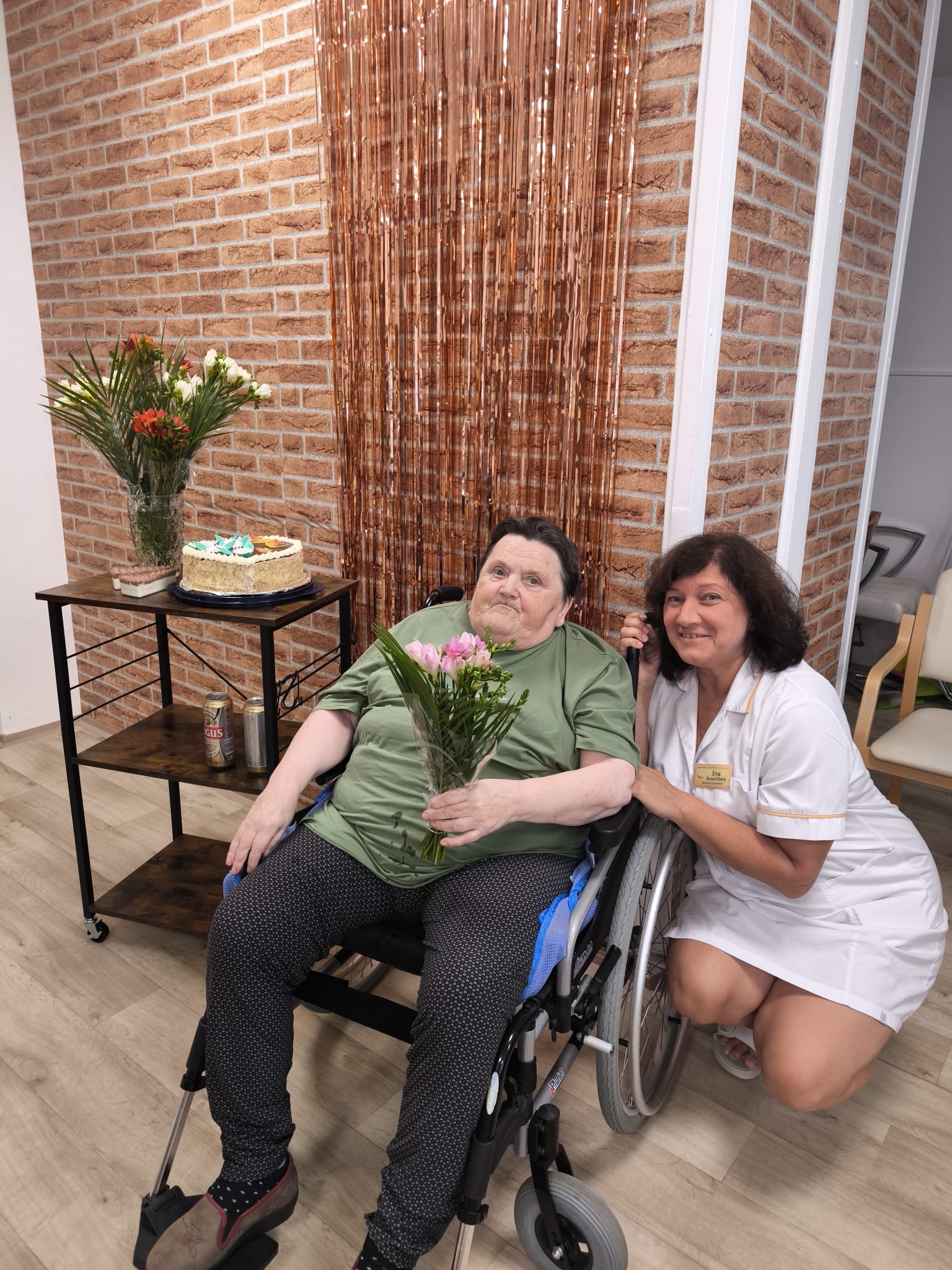 „Dnešní odpoledne patřilo oslavě narozenin našich klientů. Společně jsme si užili příjemné posezení u občerstvení. Dámy potěšila kytička, pánové si pochutnali na pivu a klobásce.“