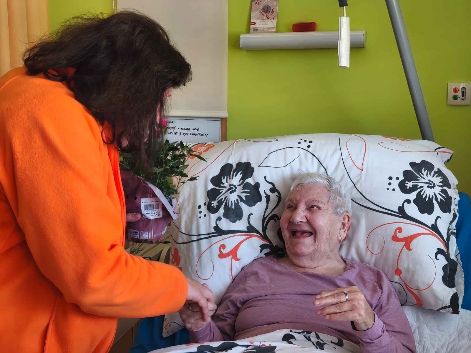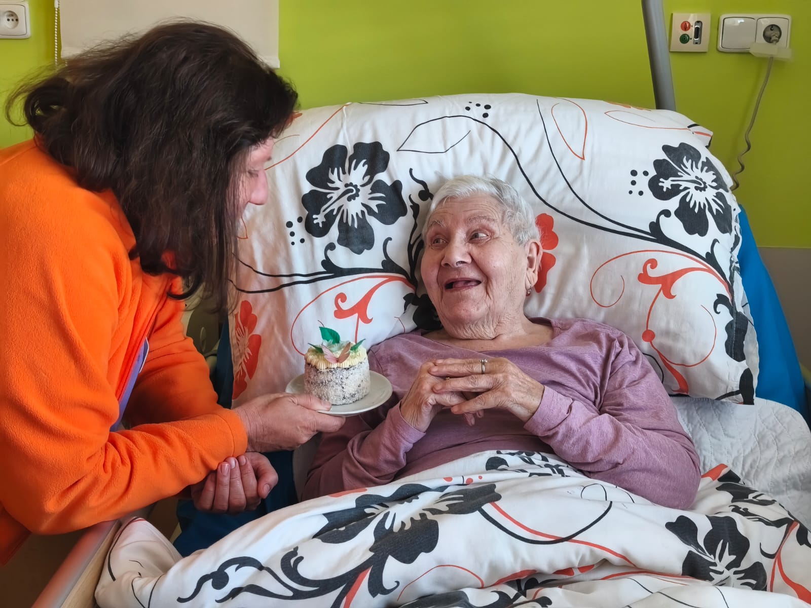Klientům, kteří se oslavy nemohli zúčastnit, jsme přišli popřát přímo na jejich pokoj, aby ani oni nebyli ochuzeni o tuto milou událost.