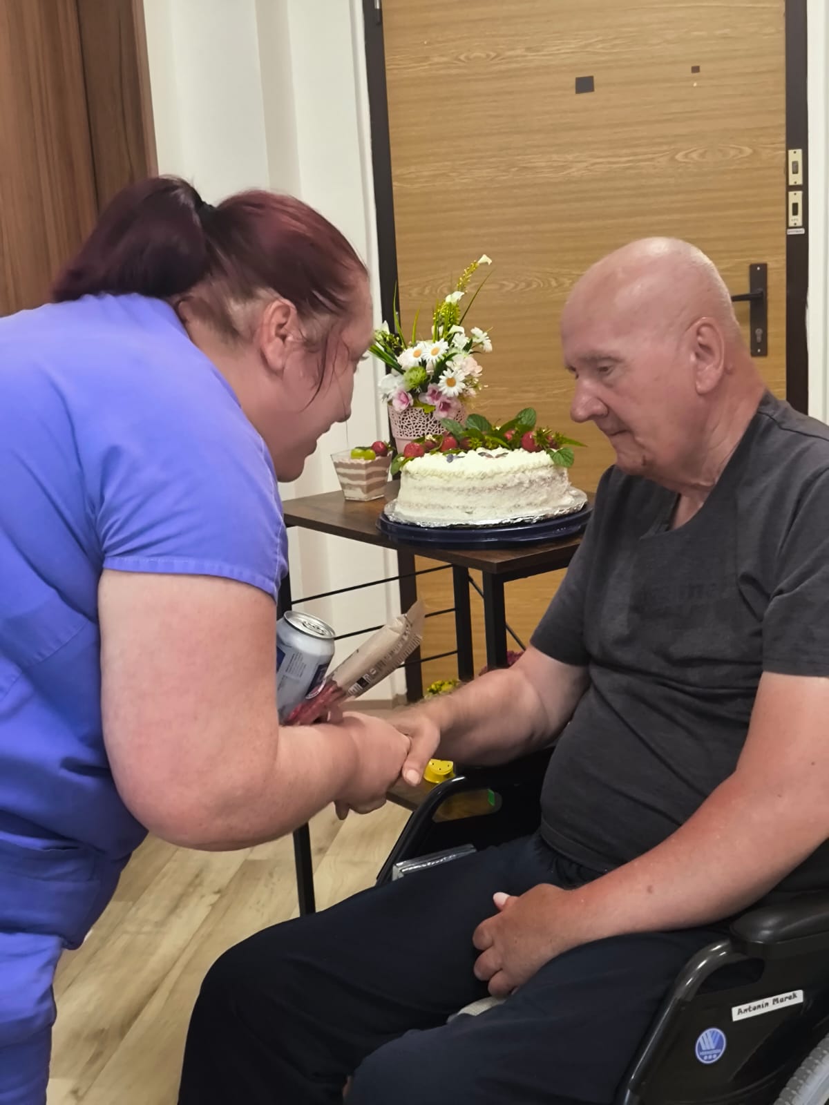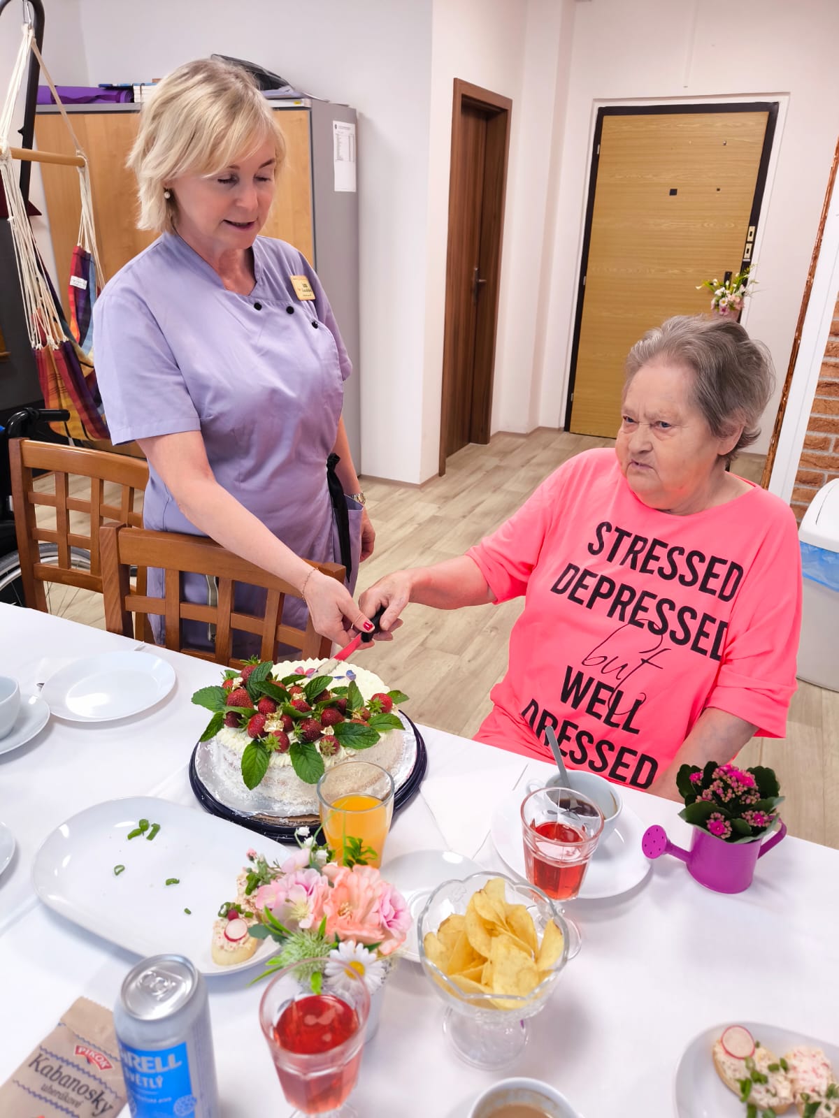 Dnešní den jsme s klienty oslavili narozeniny. Ženy obdržely kytičku, muži klobásku a pivo. Oslava proběhla ve znamení úsměvů a dobré nálady. Společně jsme zavzpomínali na dřívější oslavy, které jsme v životě prožili.
