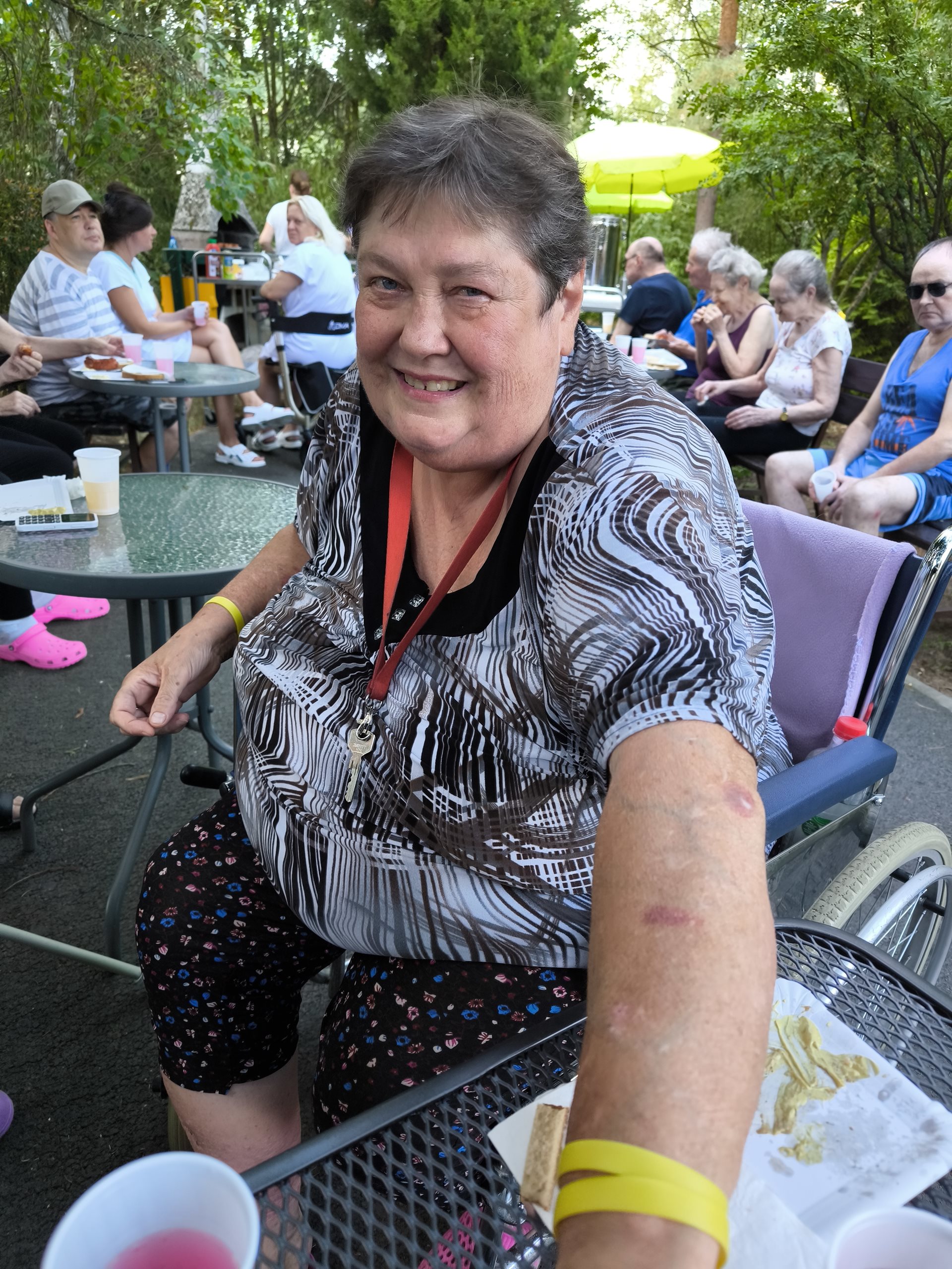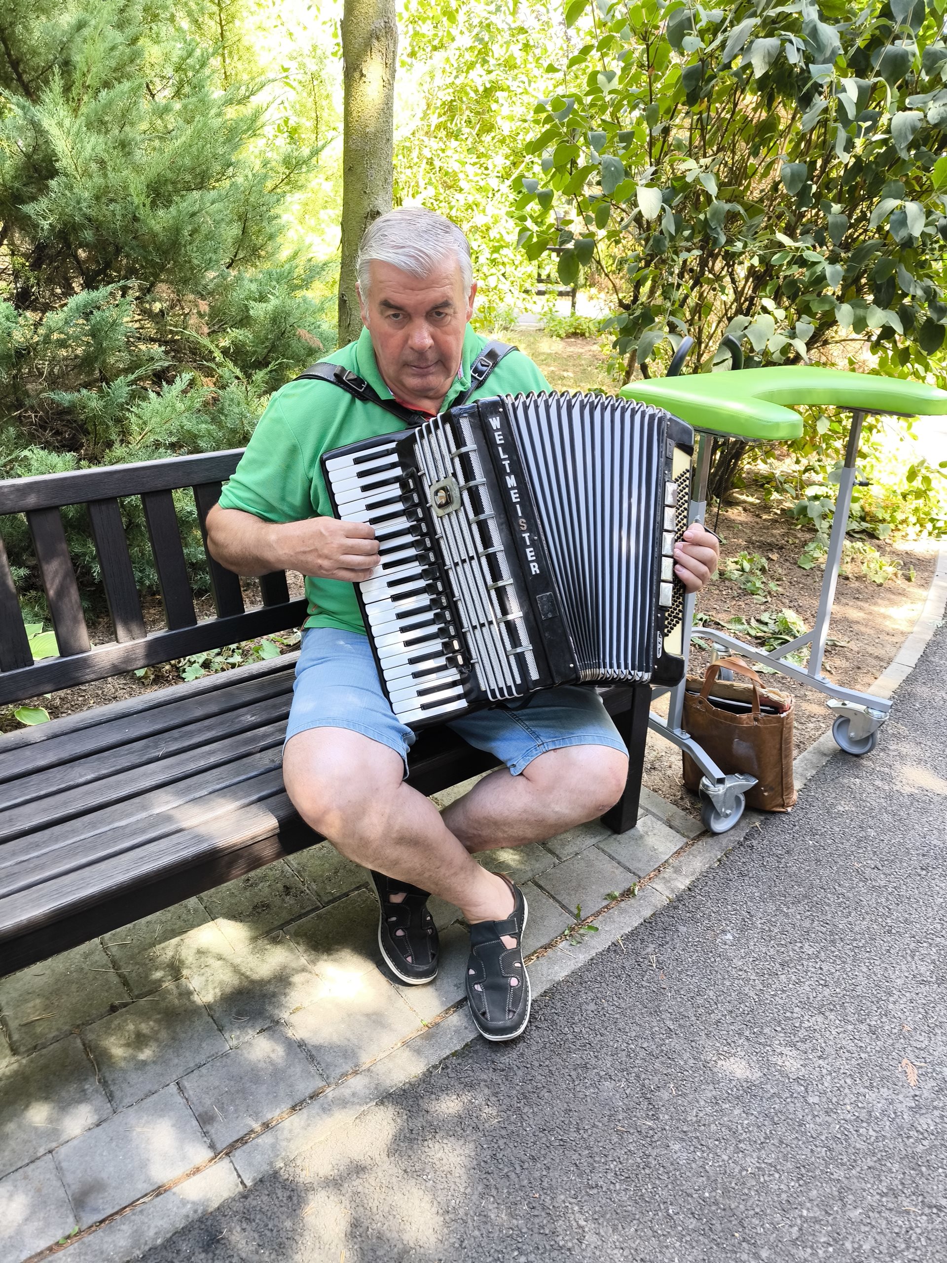 Dnešní odpoledne jsme si zpestřili grilováním špekáčků v zahradě. Chlazené nápoje, stín stromů a harmonika nám zvedla náladu.