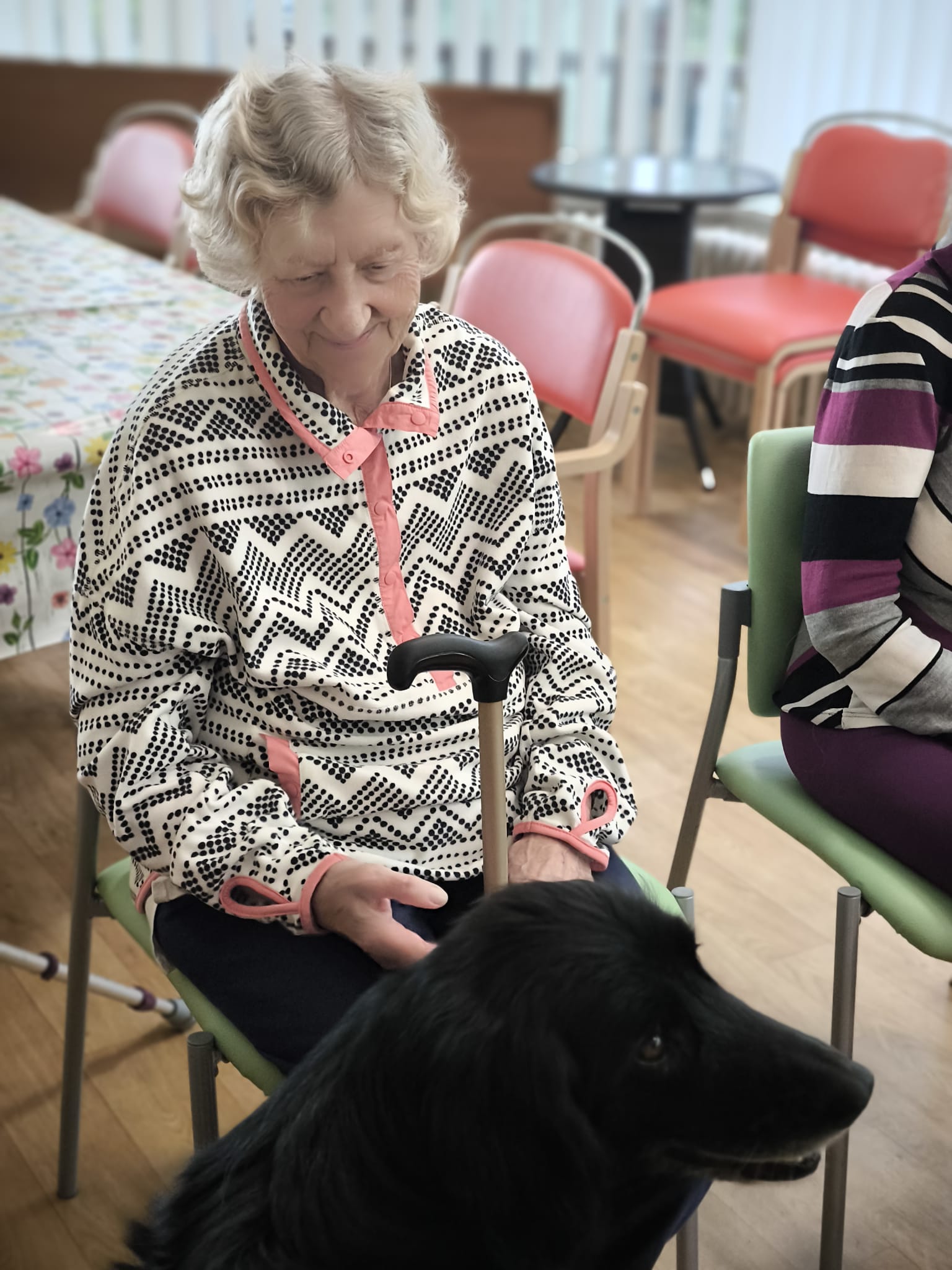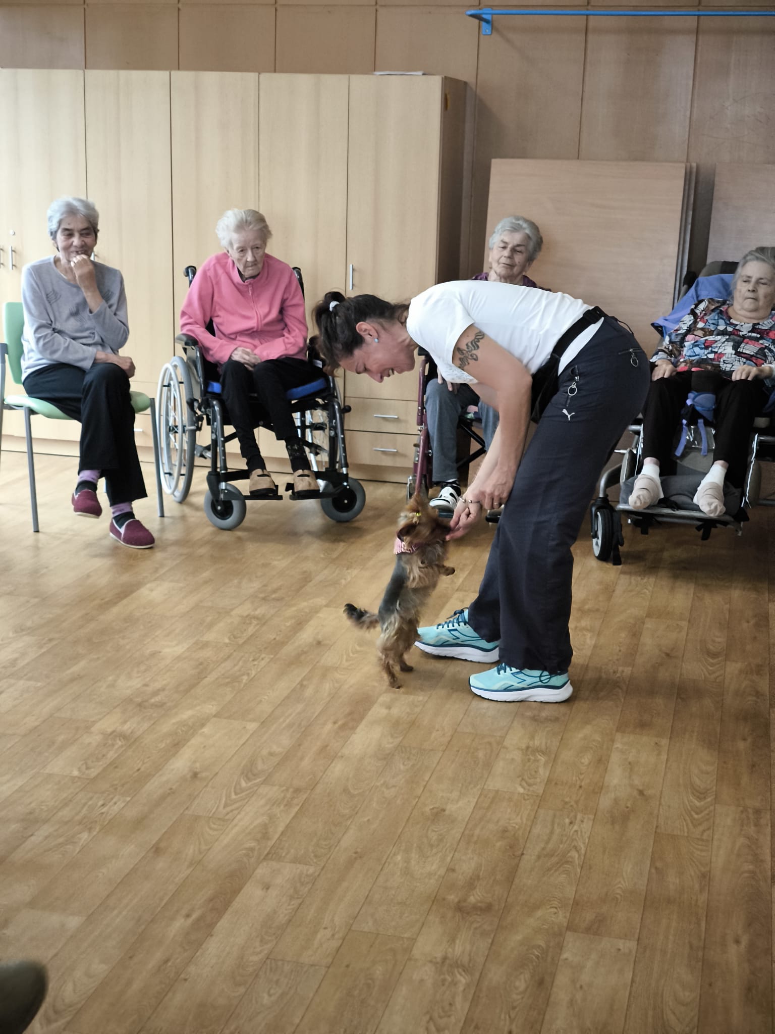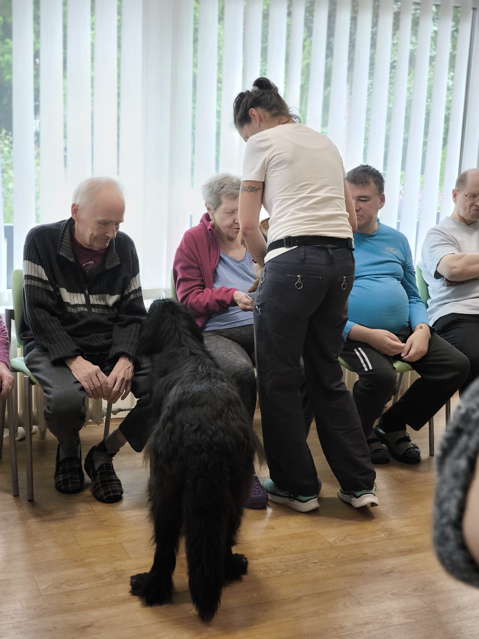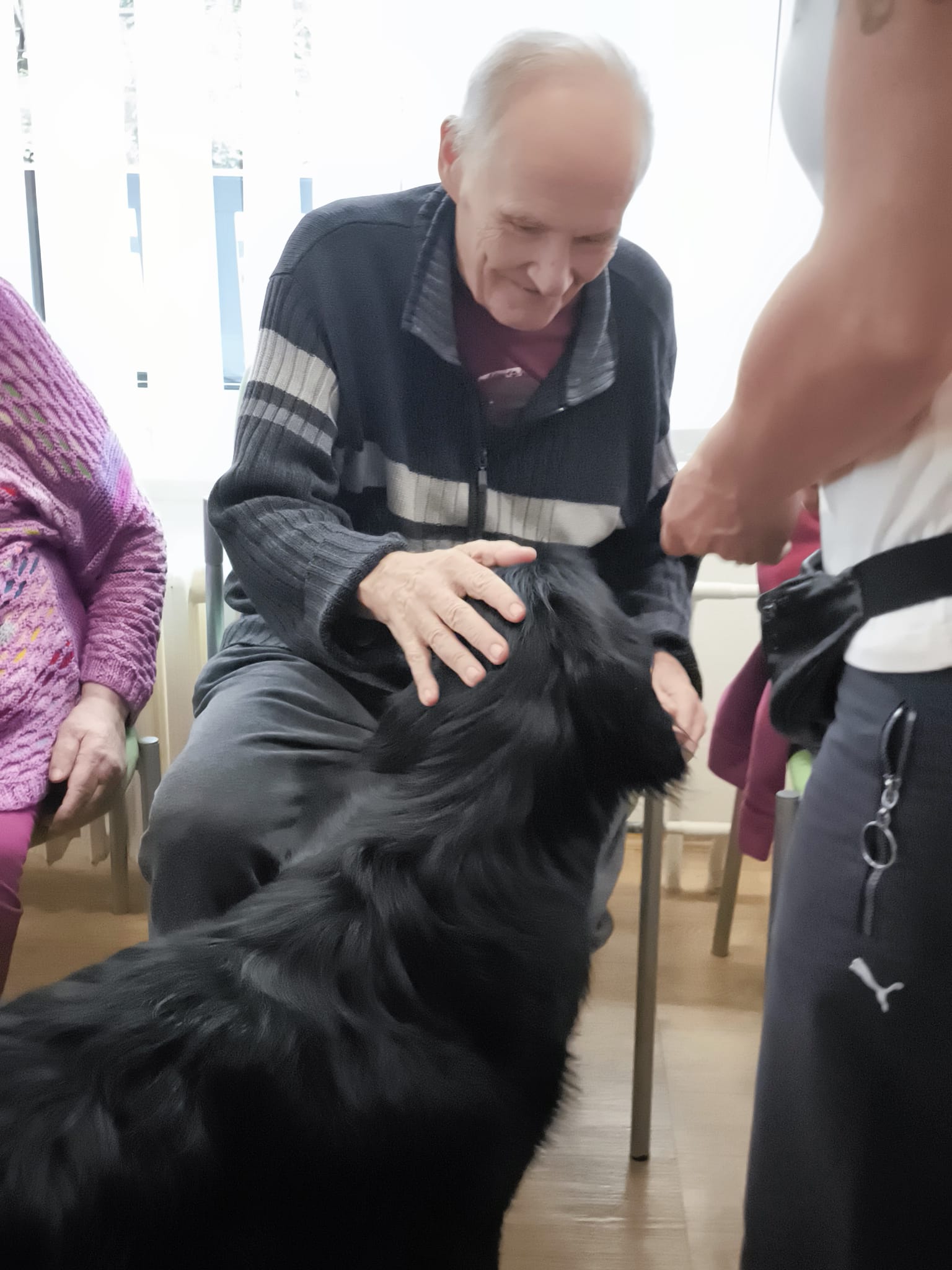 Klienti ze 3. a 4. oddělení si dnes užili návštěvu psích kamarádek Berry a Mii při skupinové canisterapii.