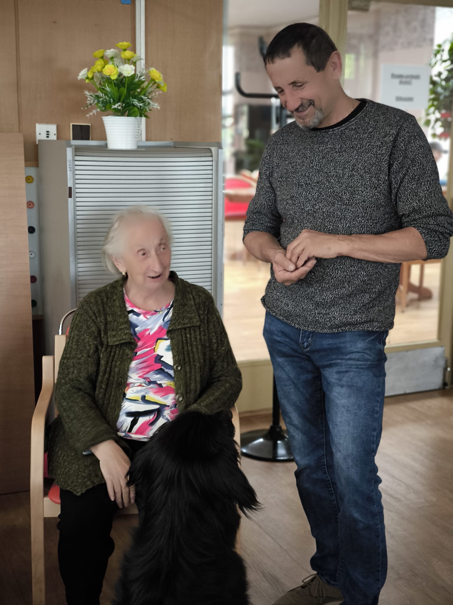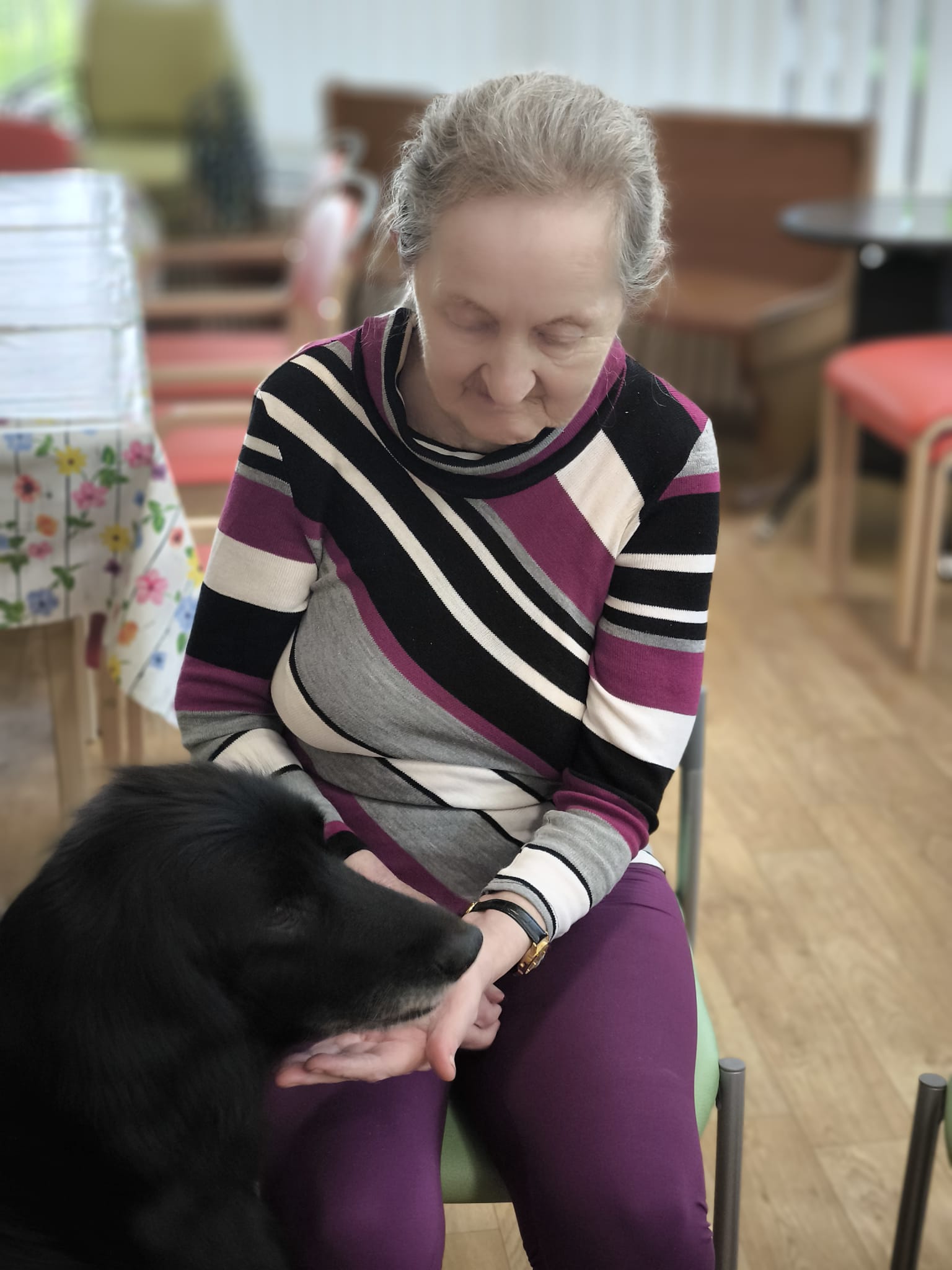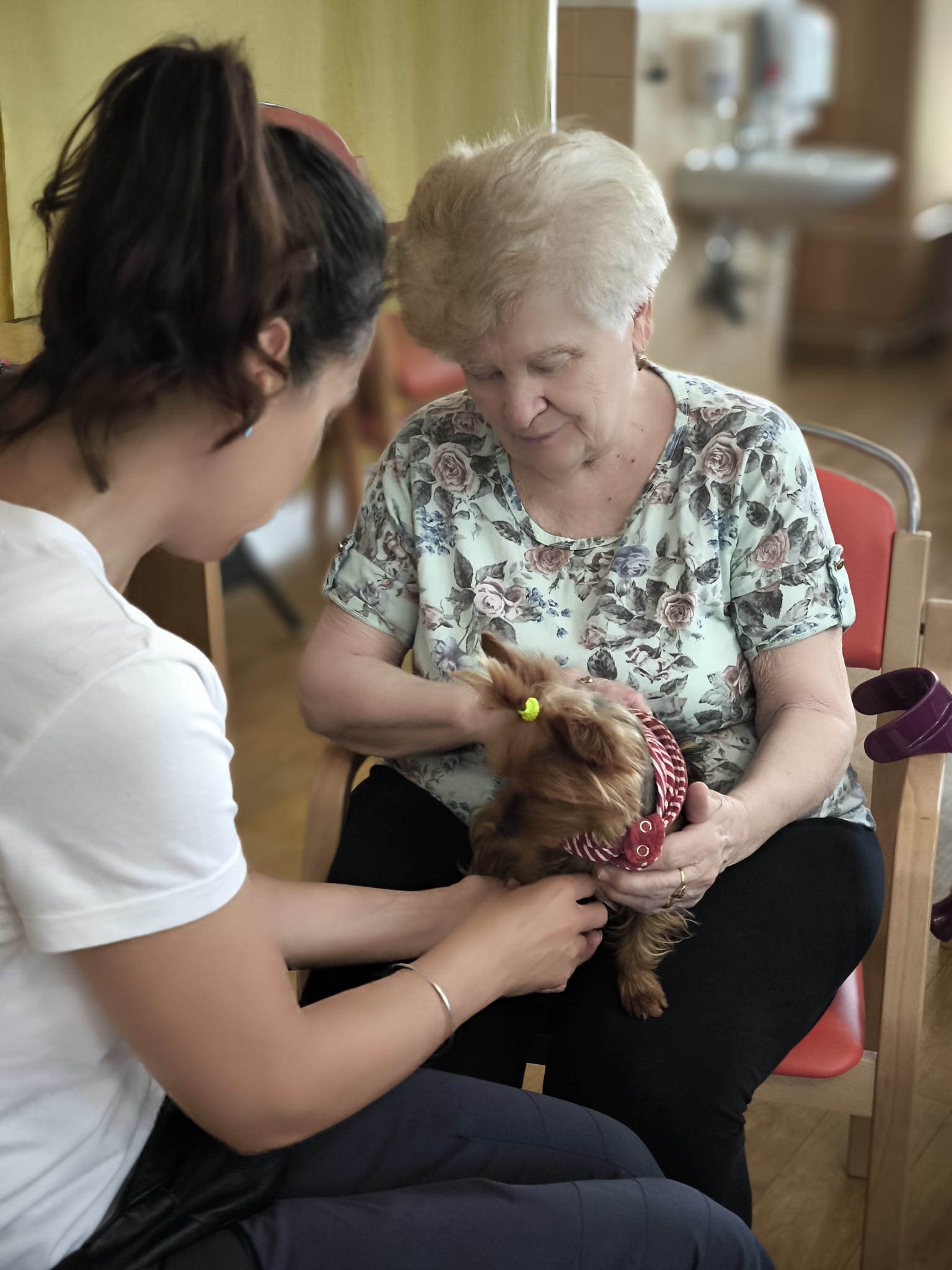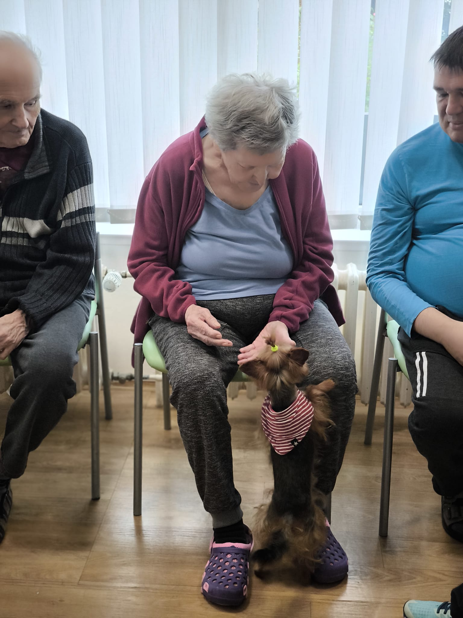 Klienti ze 3. a 4. oddělení si dnes užili návštěvu psích kamarádek Berry a Mii při skupinové canisterapii.