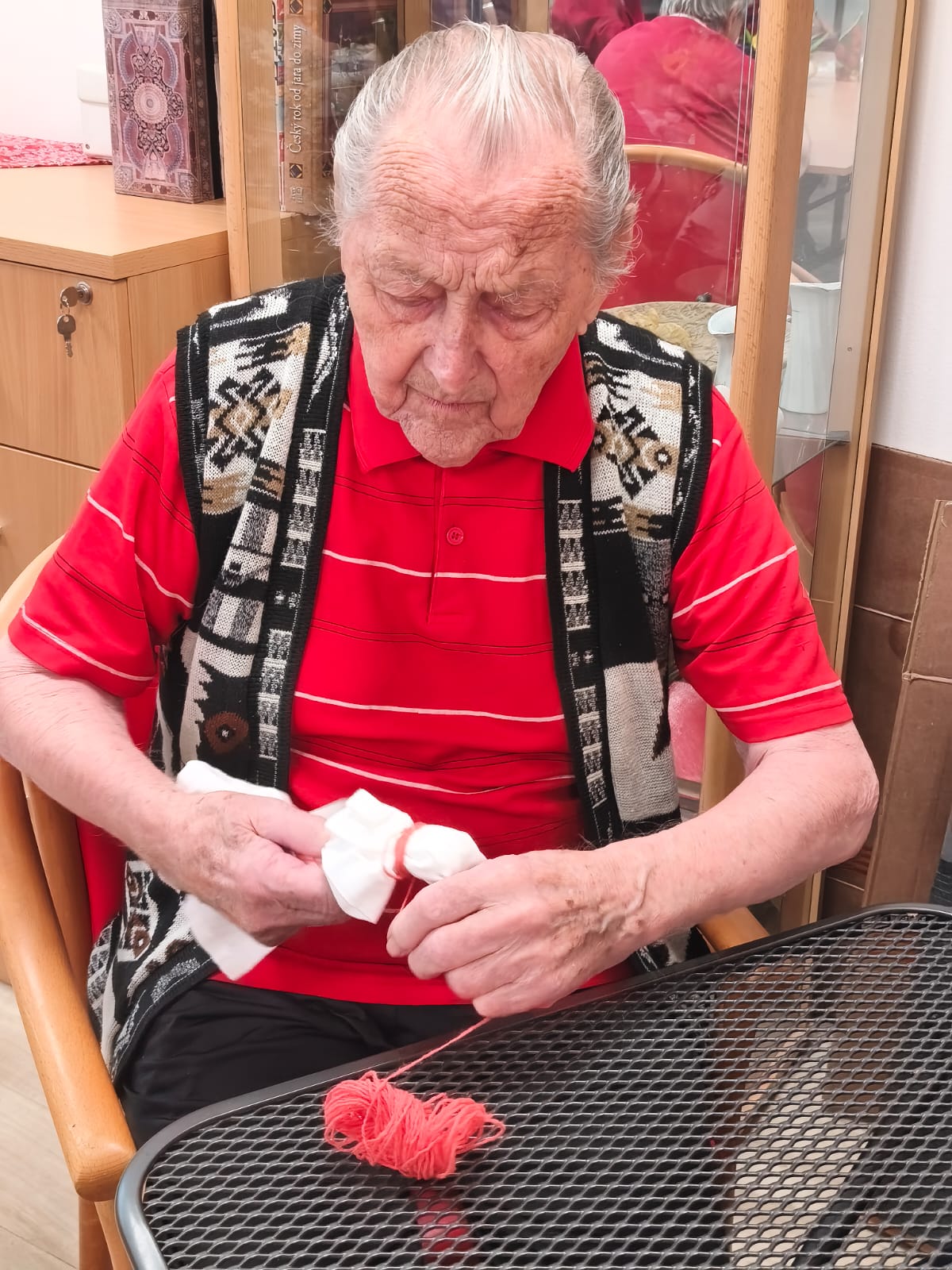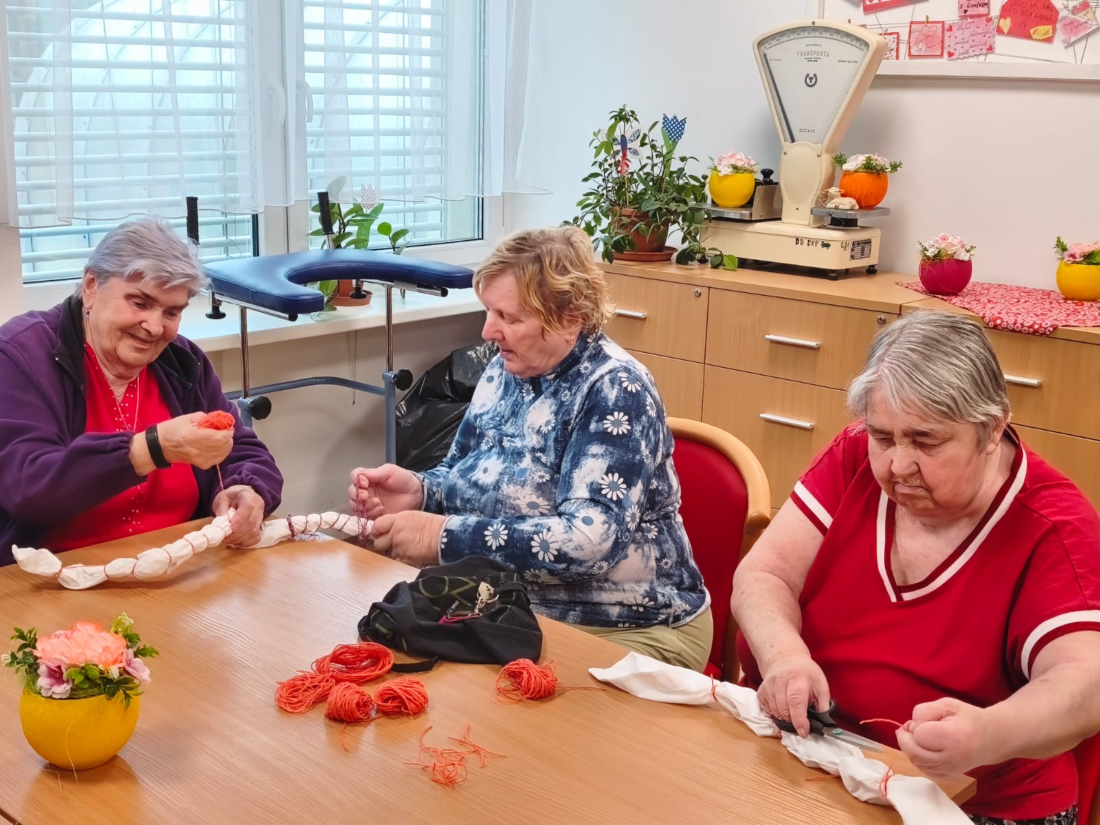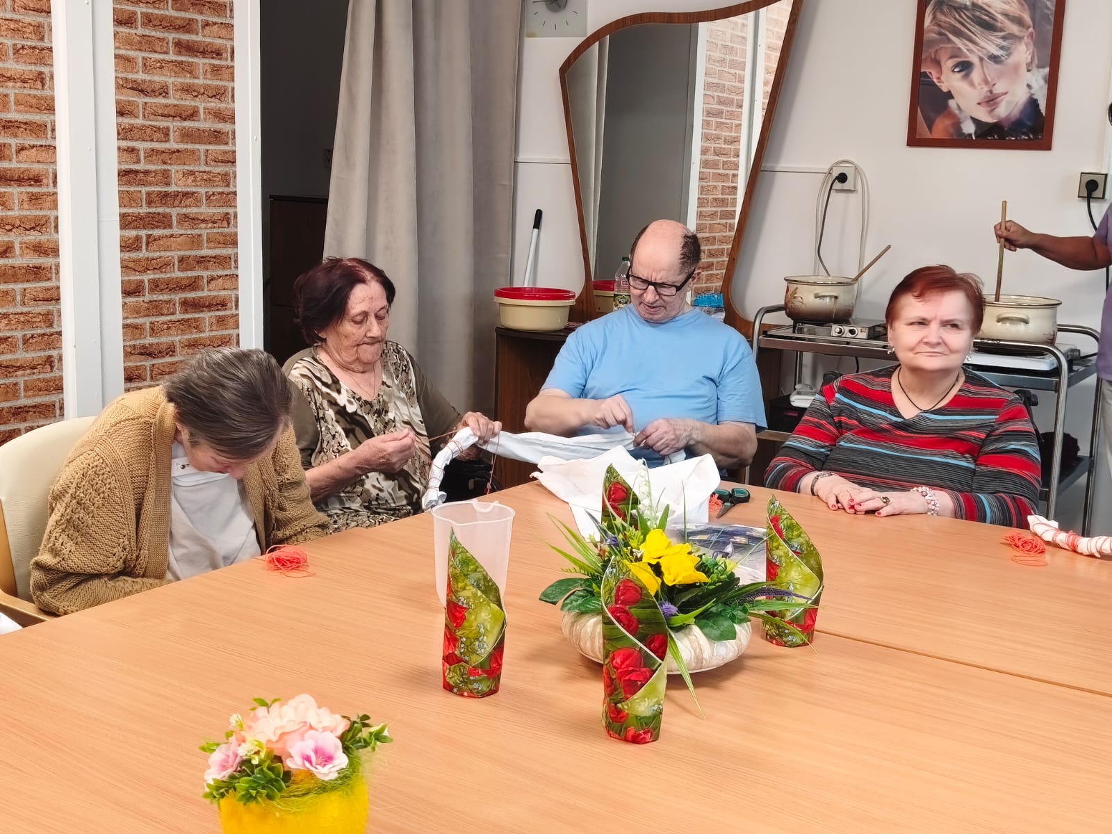 Aktivita probíhala v klidné a přátelské atmosféře. Klienti se soustředili na práci, vzájemně si pomáhali a zároveň si u toho povídali. Pro mnohé byla činnost příjemnou vzpomínkou na dřívější ruční práce.