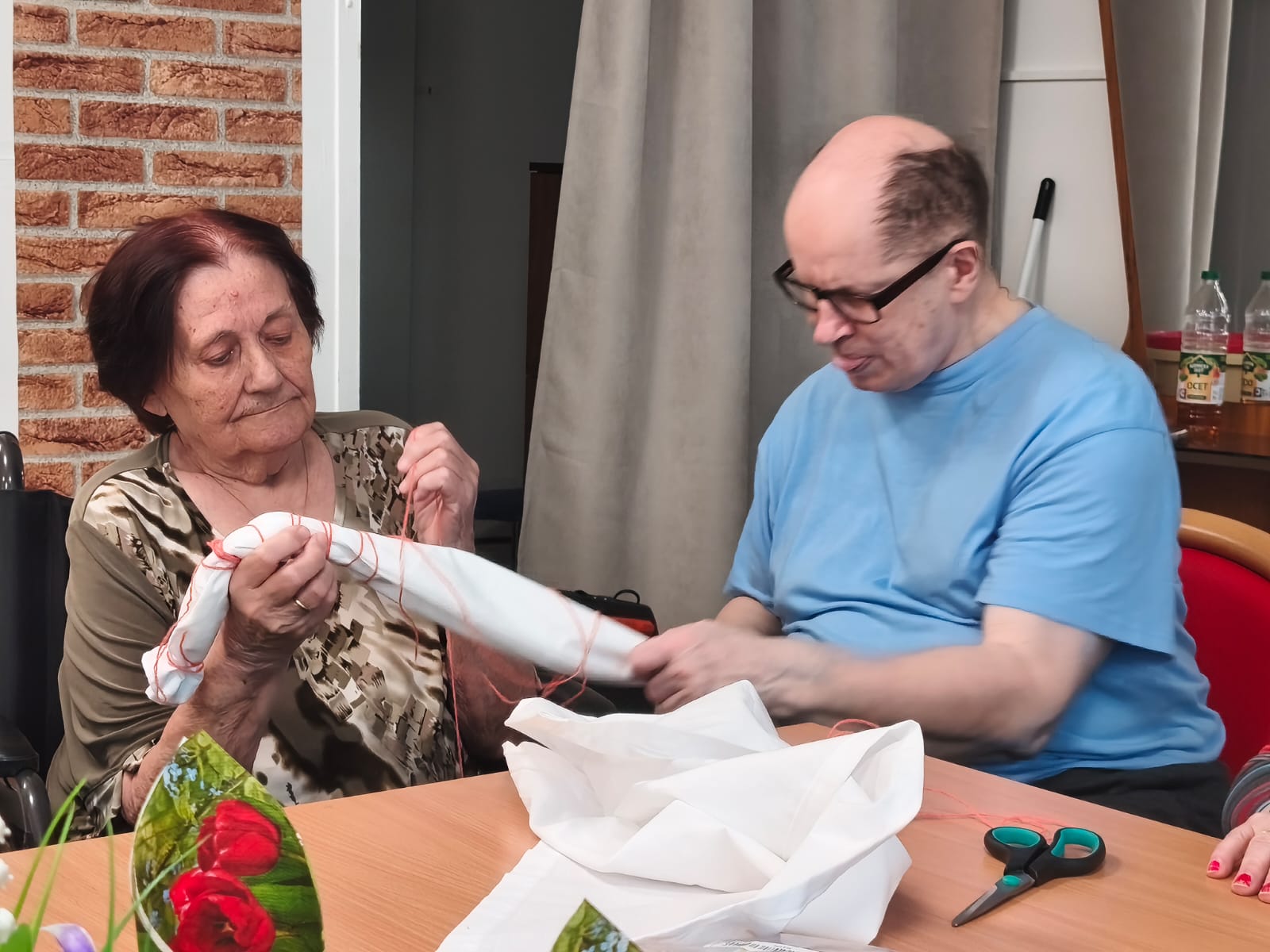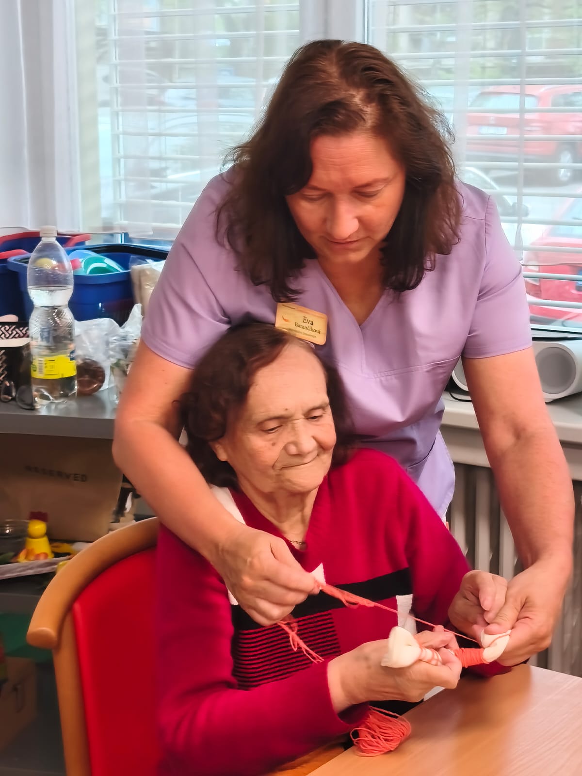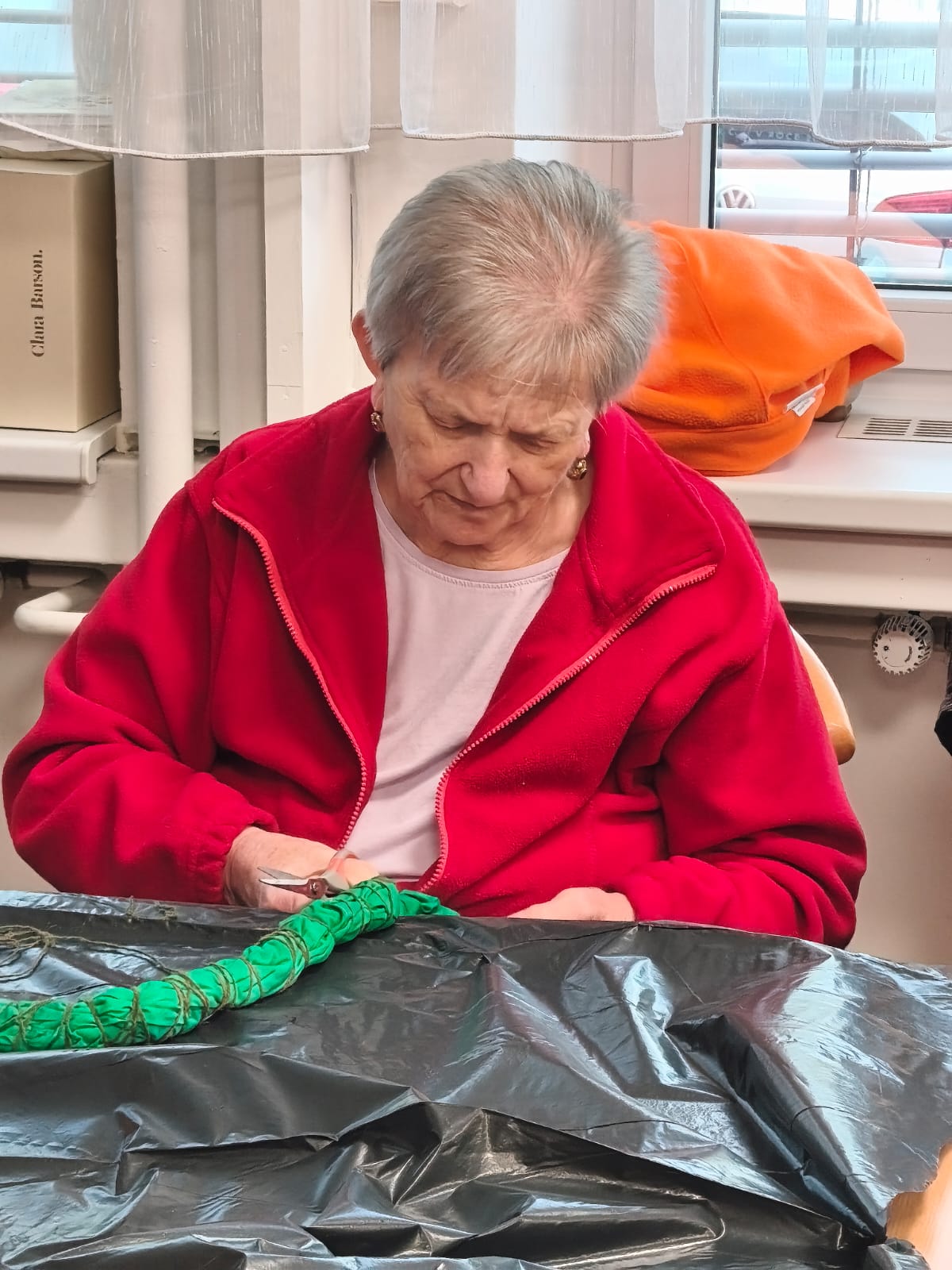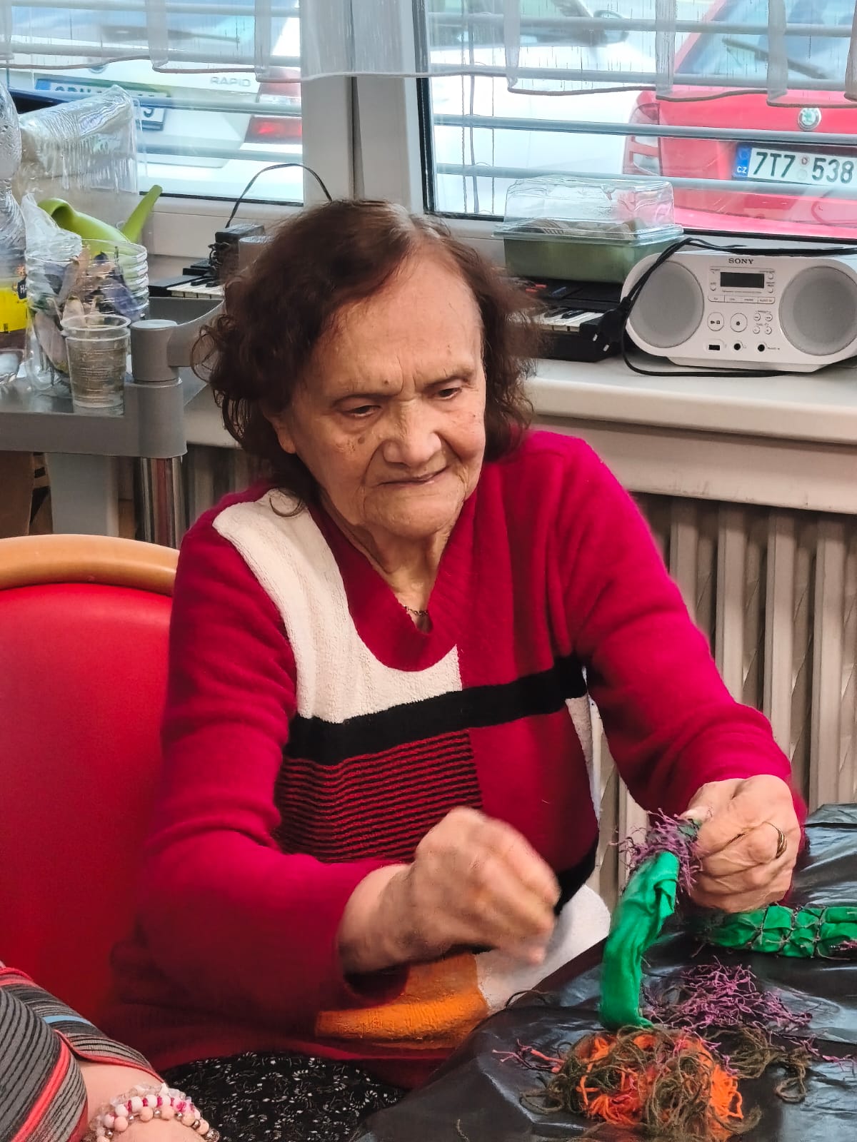 Aktivita probíhala v klidné a přátelské atmosféře. Klienti se soustředili na práci, vzájemně si pomáhali a zároveň si u toho povídali. Pro mnohé byla činnost příjemnou vzpomínkou na dřívější ruční práce.