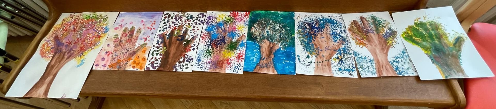 Každý, kdo měl chuť a zájem, se mohl zapojit do naší výtvarné aktivity, kde jsme společně tvořili barevné stromy. Použili jsme tempery, brčka a papír a pomocí ťupkování vytvářeli jedinečné stromy.