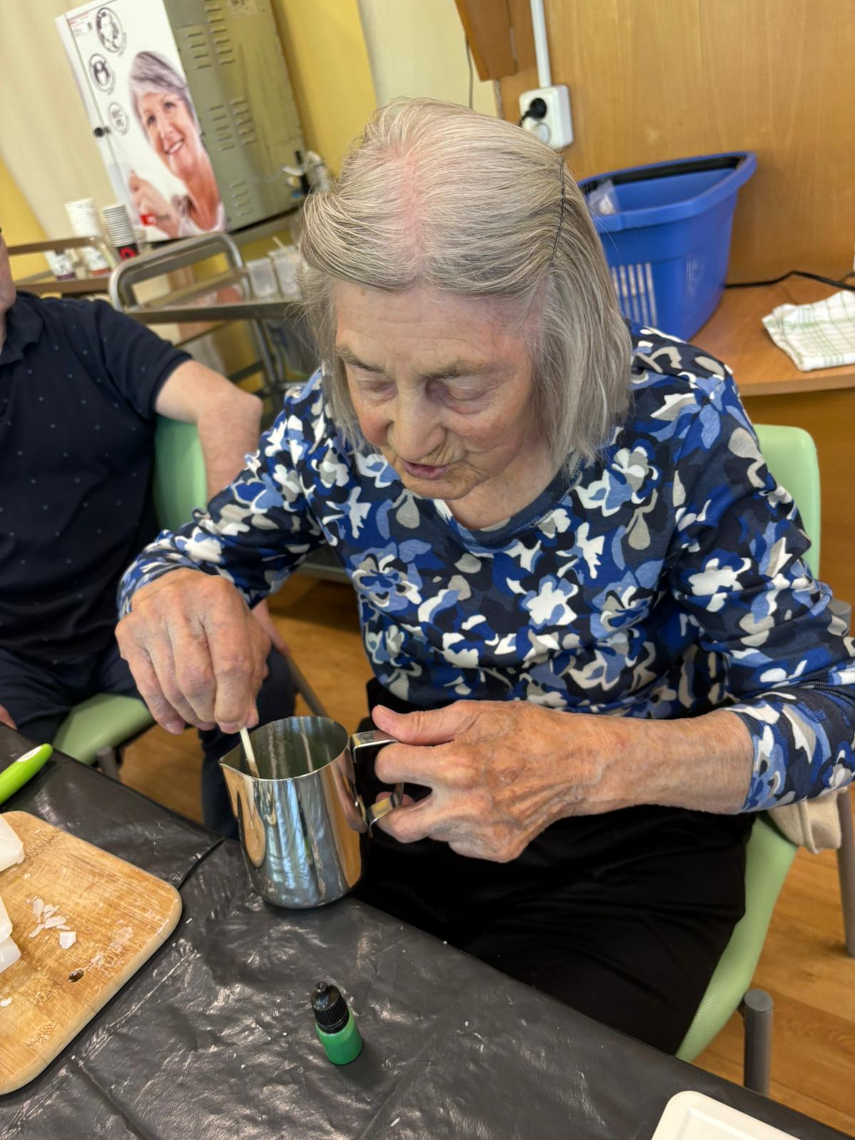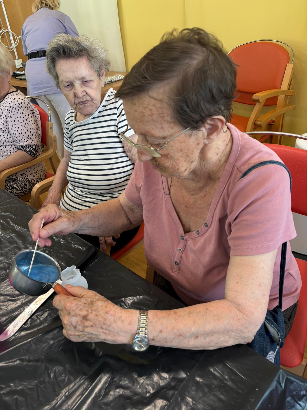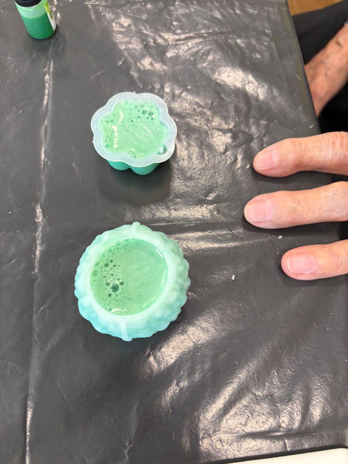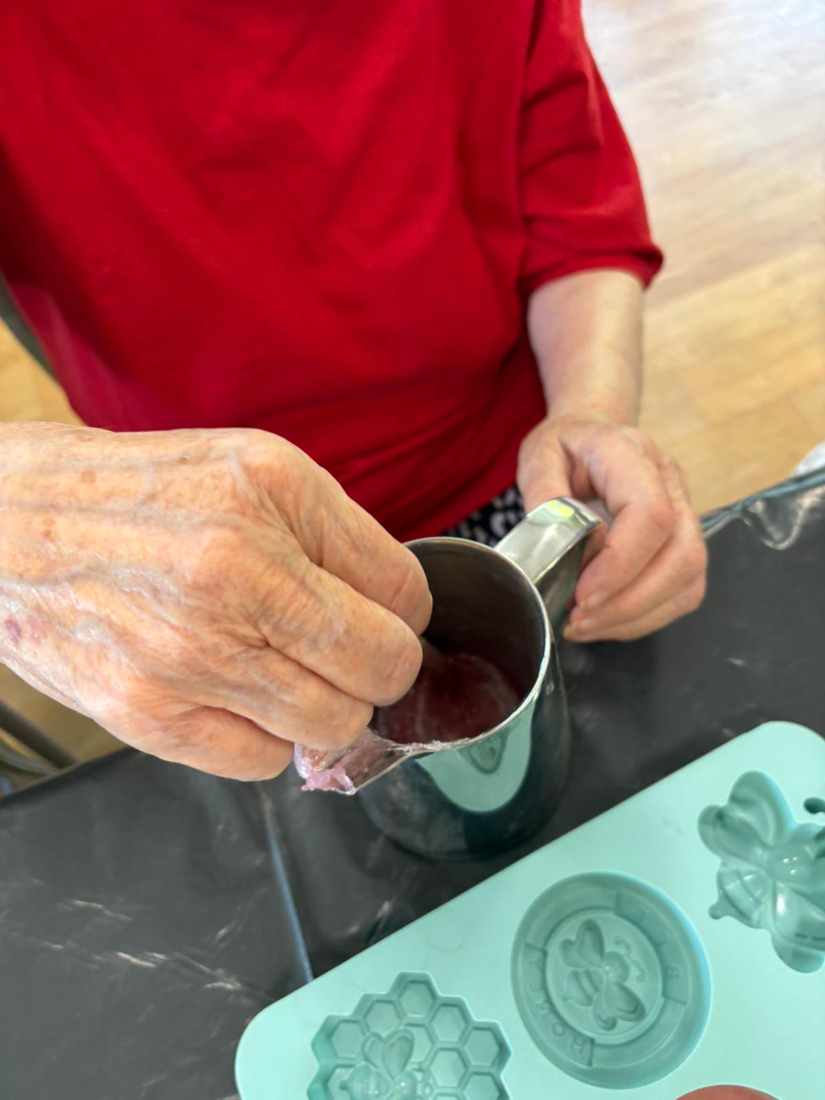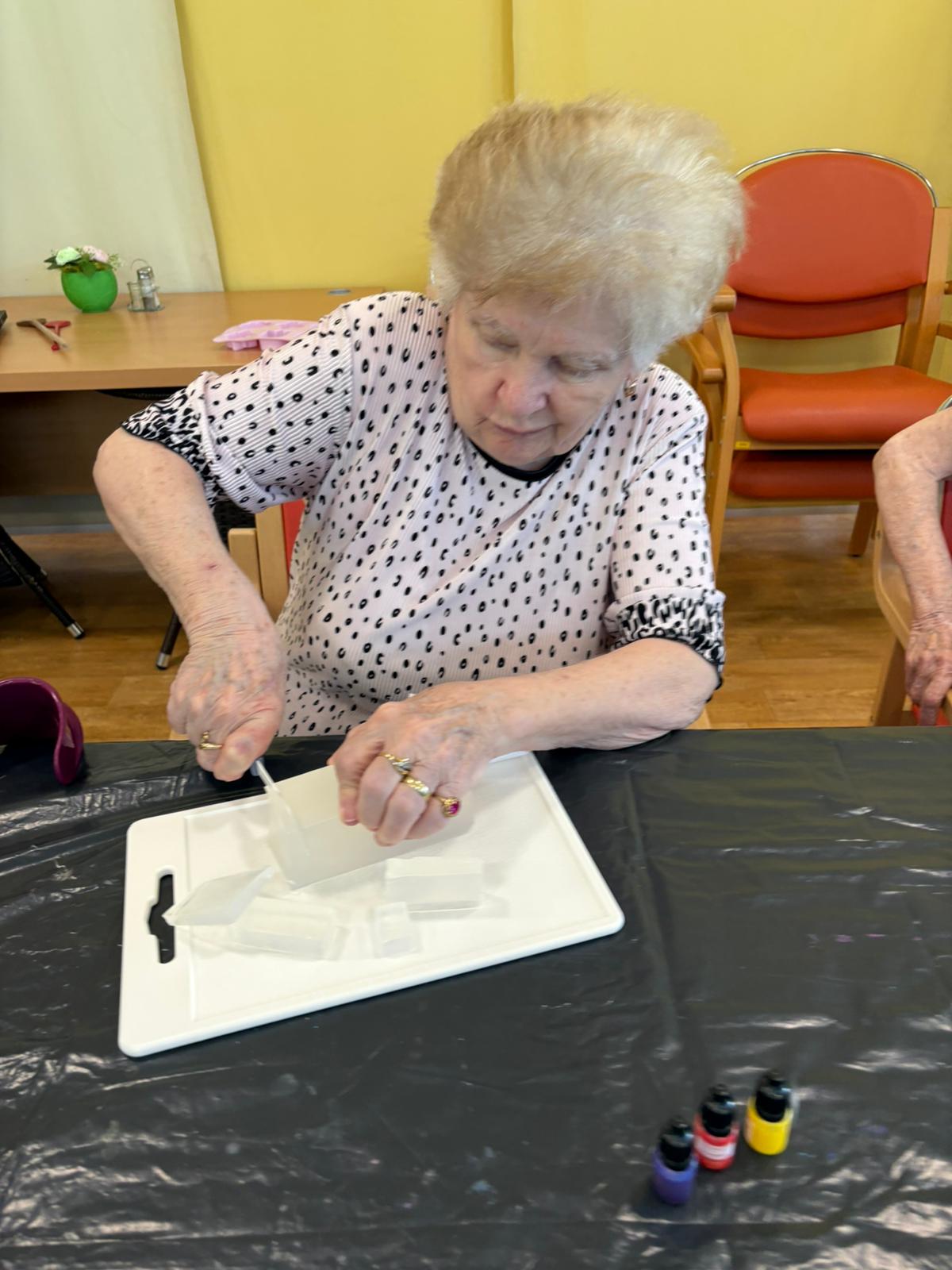 Během dnešního dopoledne jsme si společně vyráběli voňavá mýdla v silikonových formách. Klienti si sami zvolili přírodní vonné oleje, barvy i tvary mýdel. Aby nám šla práce lépe od ruky, zpříjemnili jsme si tvoření společným zpěvem.